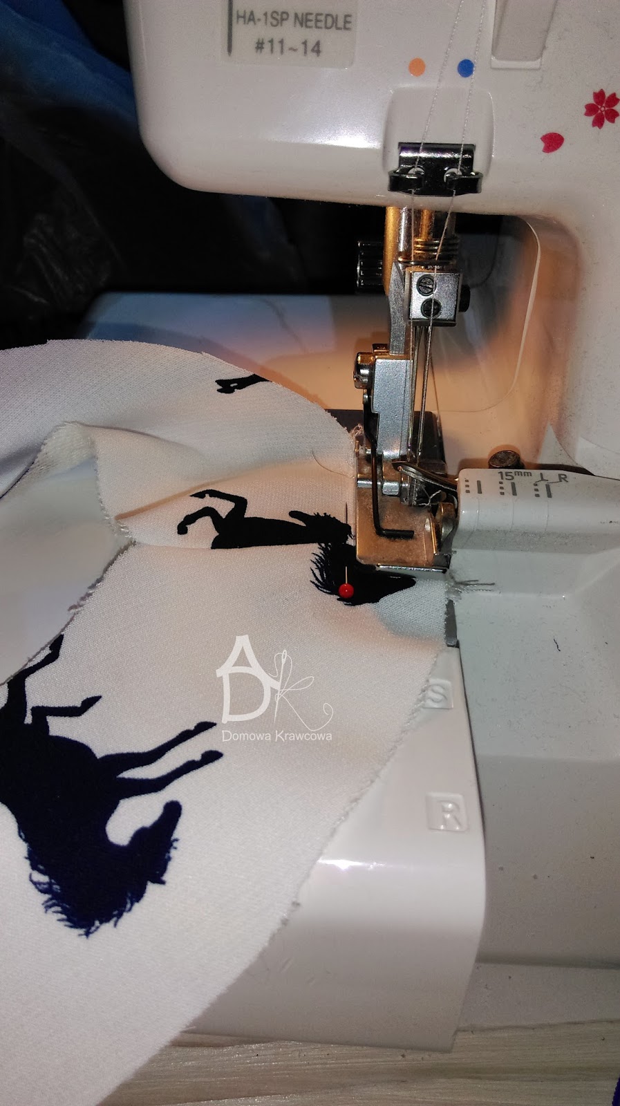 Obrzucam overlockiem całą bluzkę w koło bez pod kroju szyi.