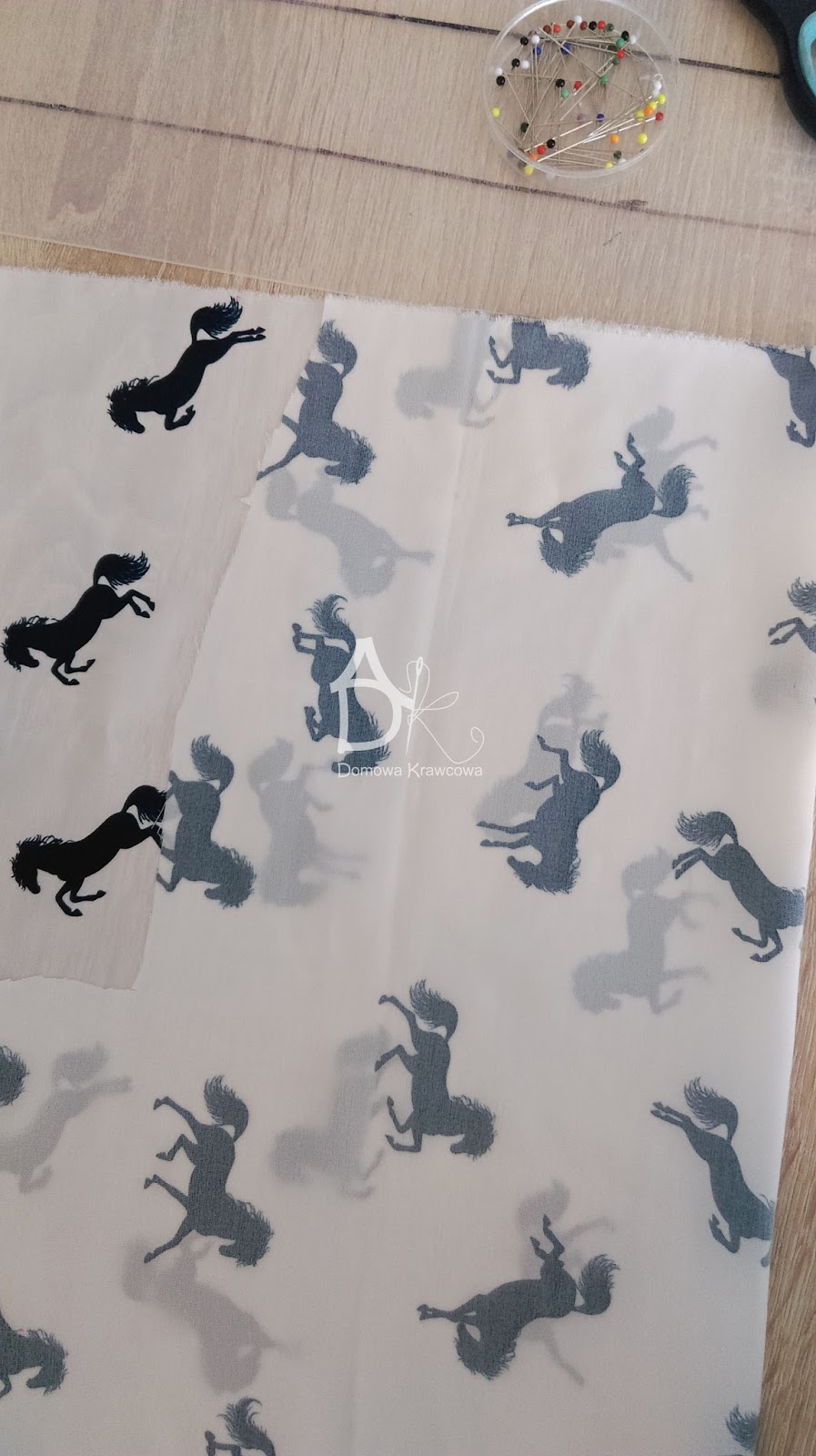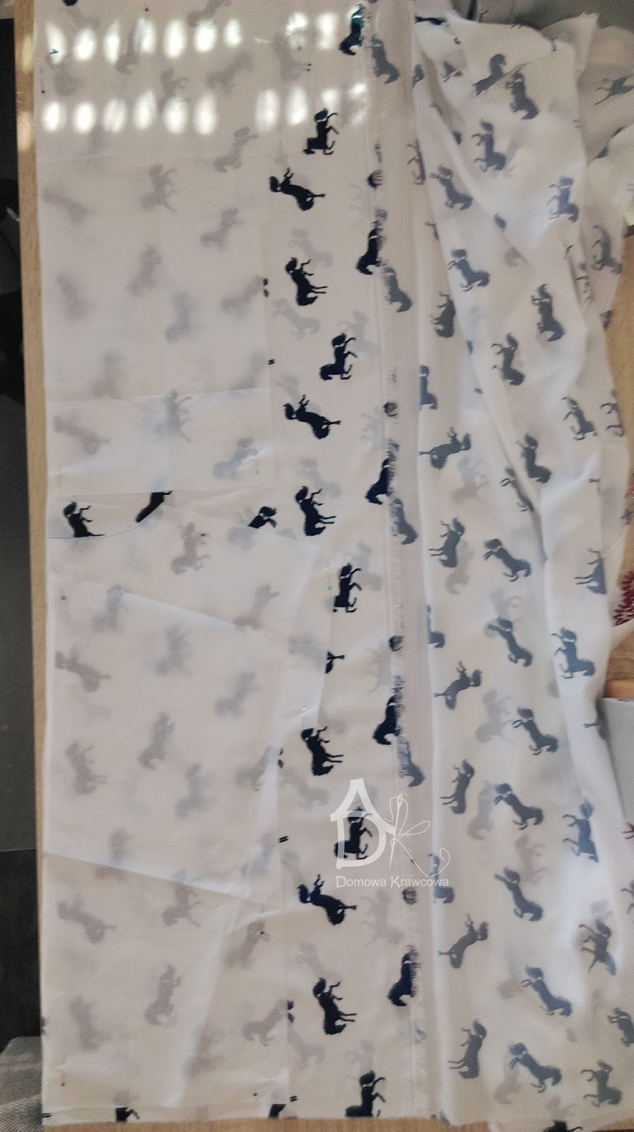 Ja szyłam bluzkę kimono w rozmiarze 36. Dlatego kroiłam ze złożonego materiały po długości. Materiał z którego możesz uszyć to len, batyst, wiskoza, satyna, satyna jedwabna itp.
