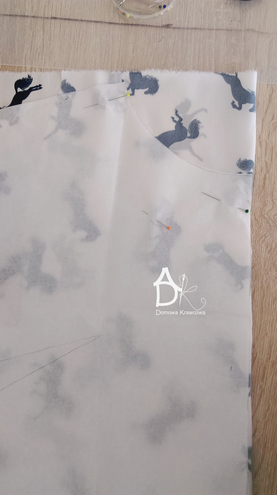 Ponieważ ja mam wykrój z zaszewka piersiową dlatego zaznaczyłam sobie szpilkami wierzchołek zaszewki.