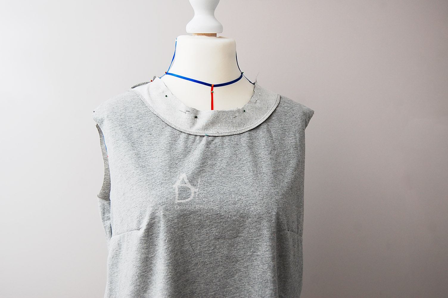 Ja mam manekin to trochę mam ułatwione, ale jeżeli nie masz to zrób to na stole przypnij obłożenie podkroju i zobacz jak leży . Jeżeli wszystko jest dobrze to przyszyj.
