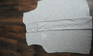- tkaninę ja wzięłam cienką dresówkę ilość w zależności jaki długi ma być tył i rękawy. Czyli należy zmierzyć długość bluzki np.: 68cm + długość rękawa 56 cm i potrzebujemy 124 cm czyli kupujemy 130cm bo należy dodać na podwinięcie.