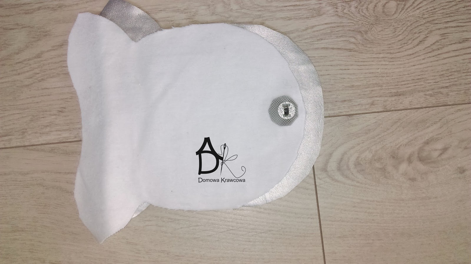 Wykroiłam srebrną tkaninę i białą flanelę z dodatkiem na szwy, a flizelinę i usztywniacz bez dodatku na szwy. Siatkę wycinam wg szablonu nr 2 bez dodatku.