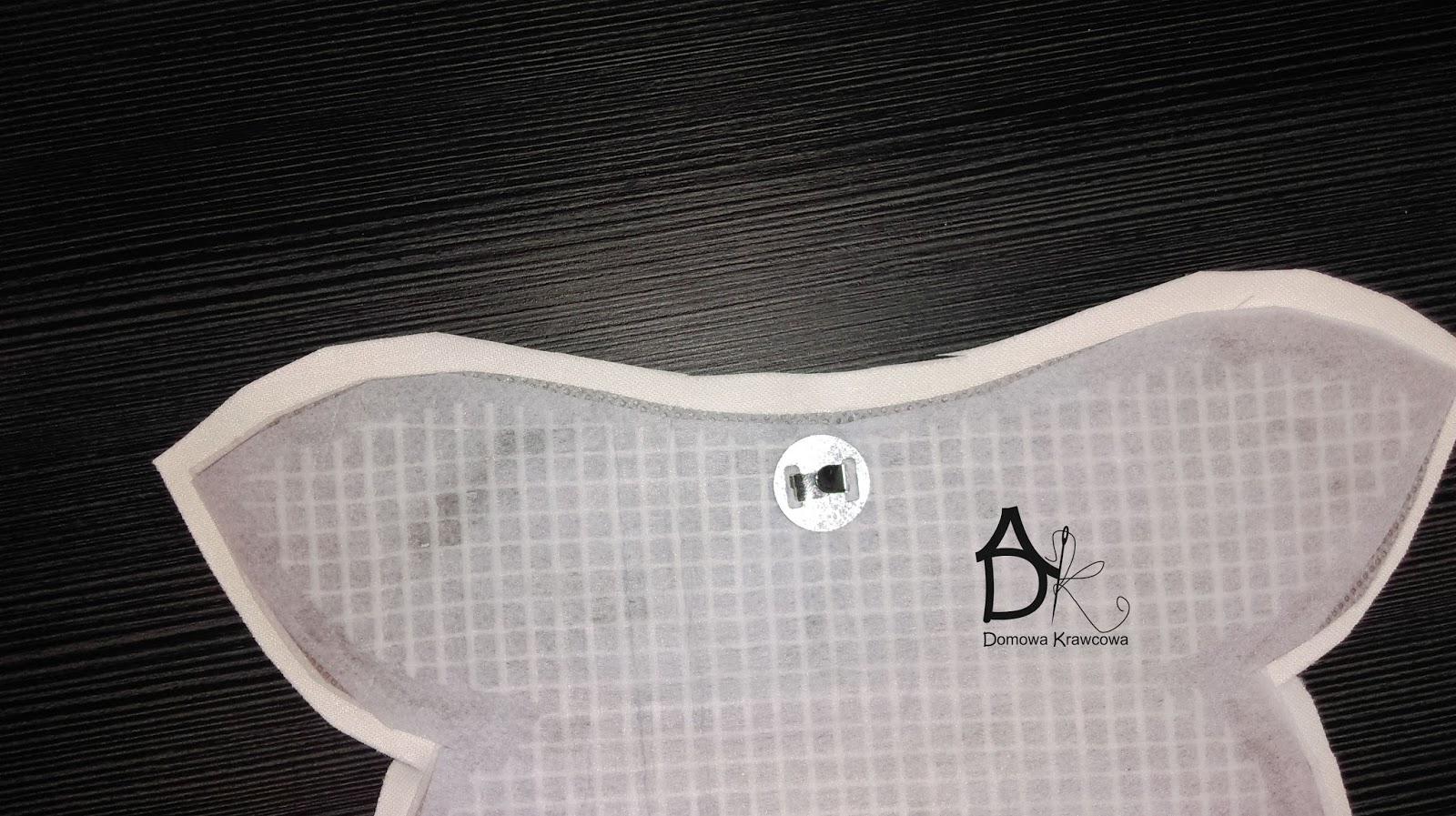 Usztywnienie szare przyklejam klejem do flizeliny. Następnie przyklejam siatkę.