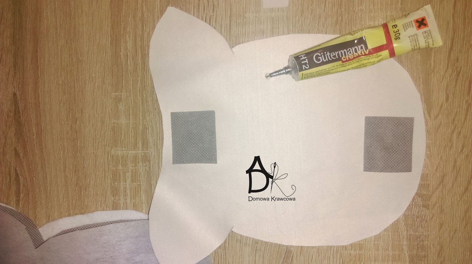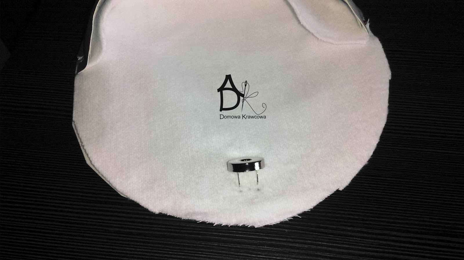 Na flaneli przyklejam wzmocnienie pod magnes i zamocowuje magnes.
