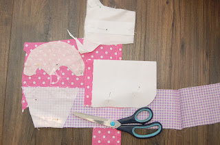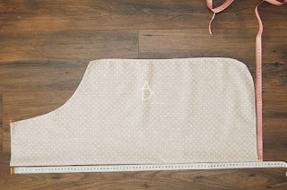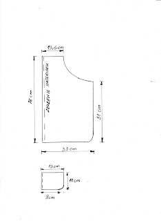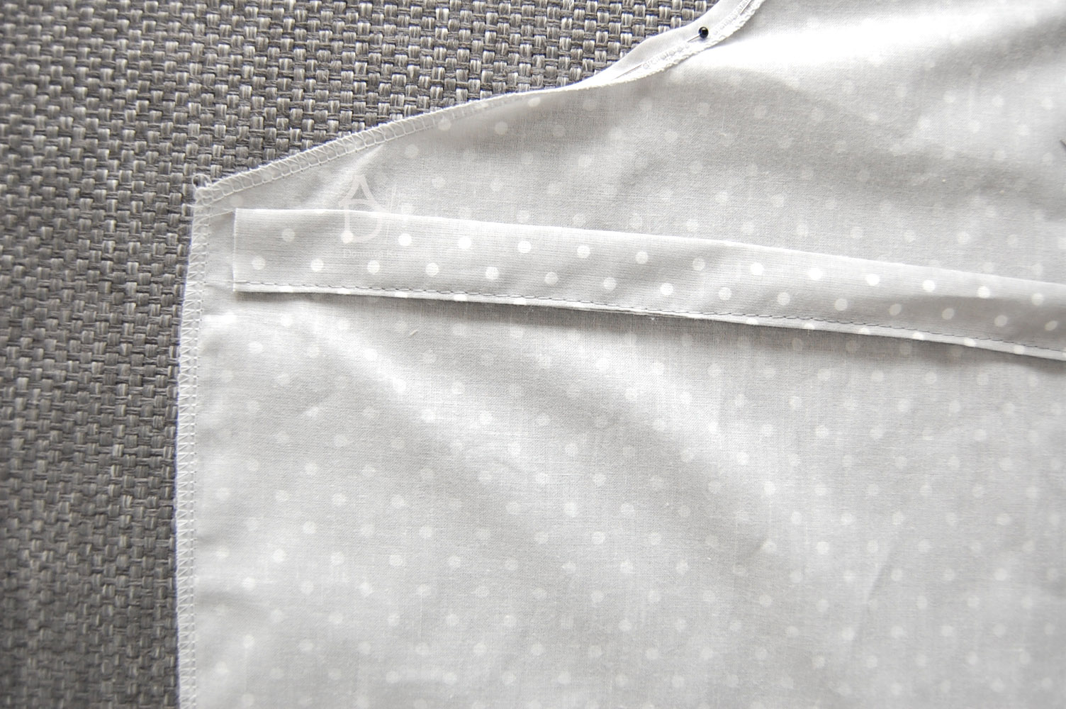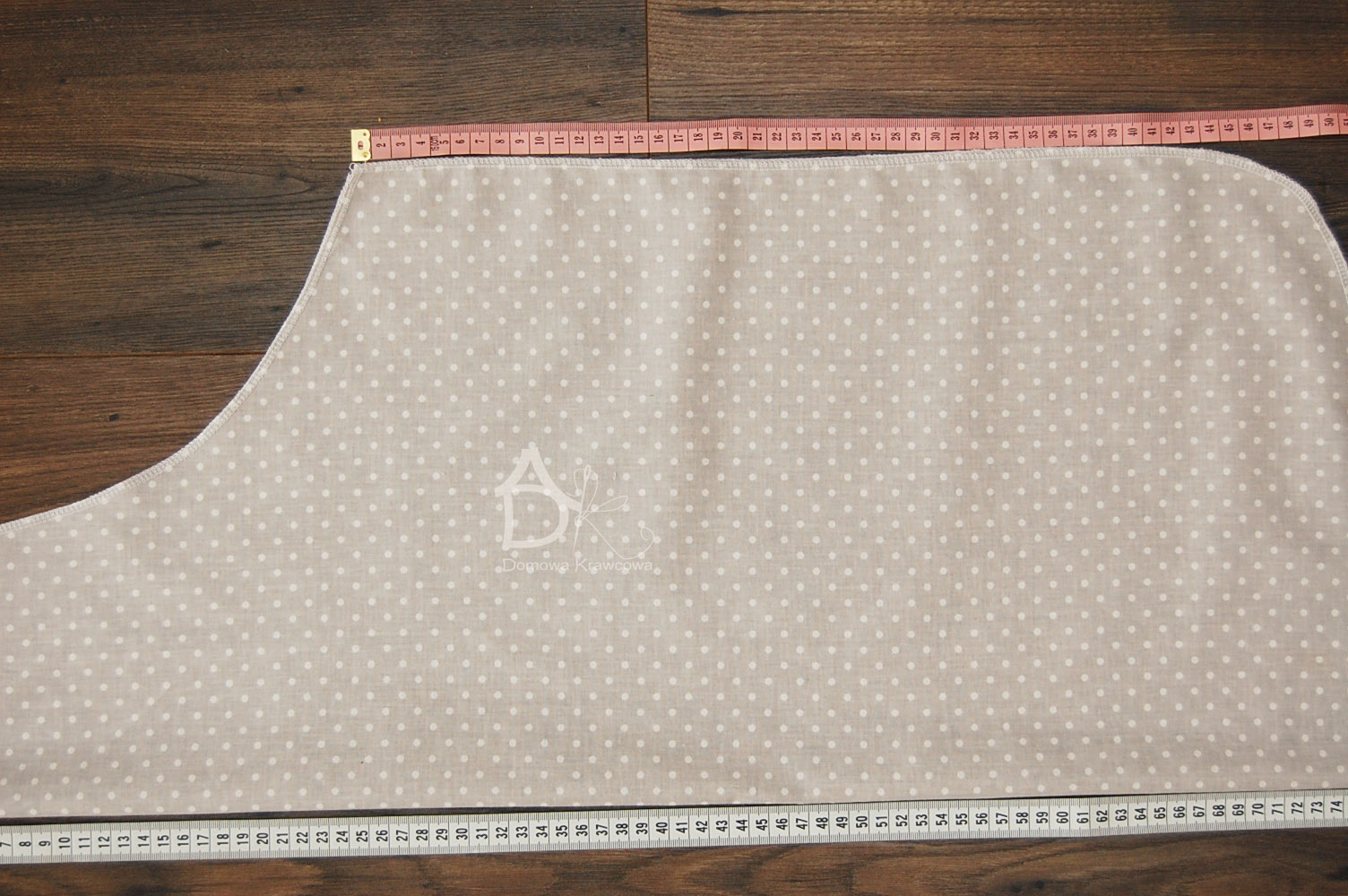 Składamy tkaninę na pół, wycinamy dół zaokrąglamy i pod pachami wg. rysunku na zdjęciu.