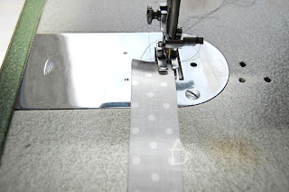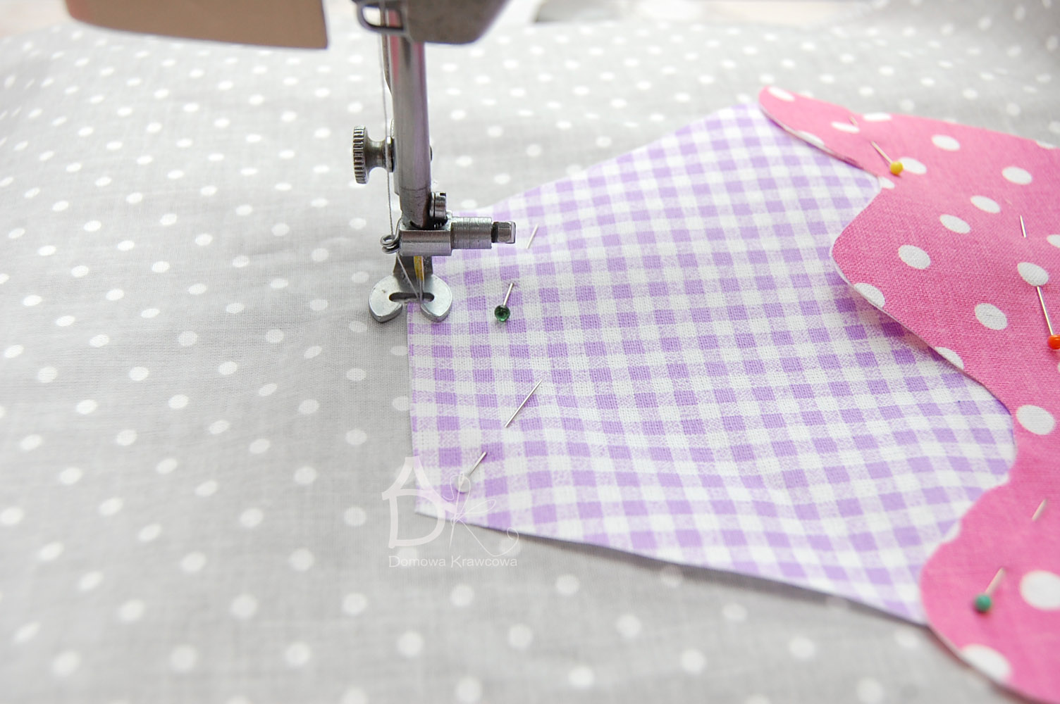 Następnie należy zaprasować brzegi na szerokość 6mm w koło i złożyć na pół i ponownie zaprasować.