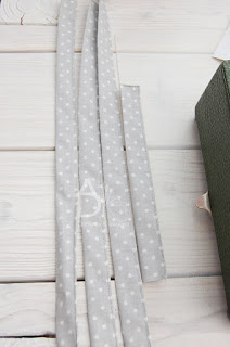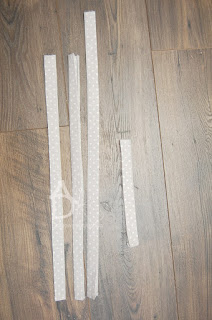 Wycinam z tkaniny zasadniczej paski czyli prostokąty szerokości 7cm i długości