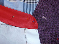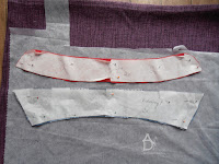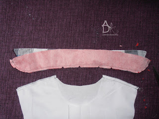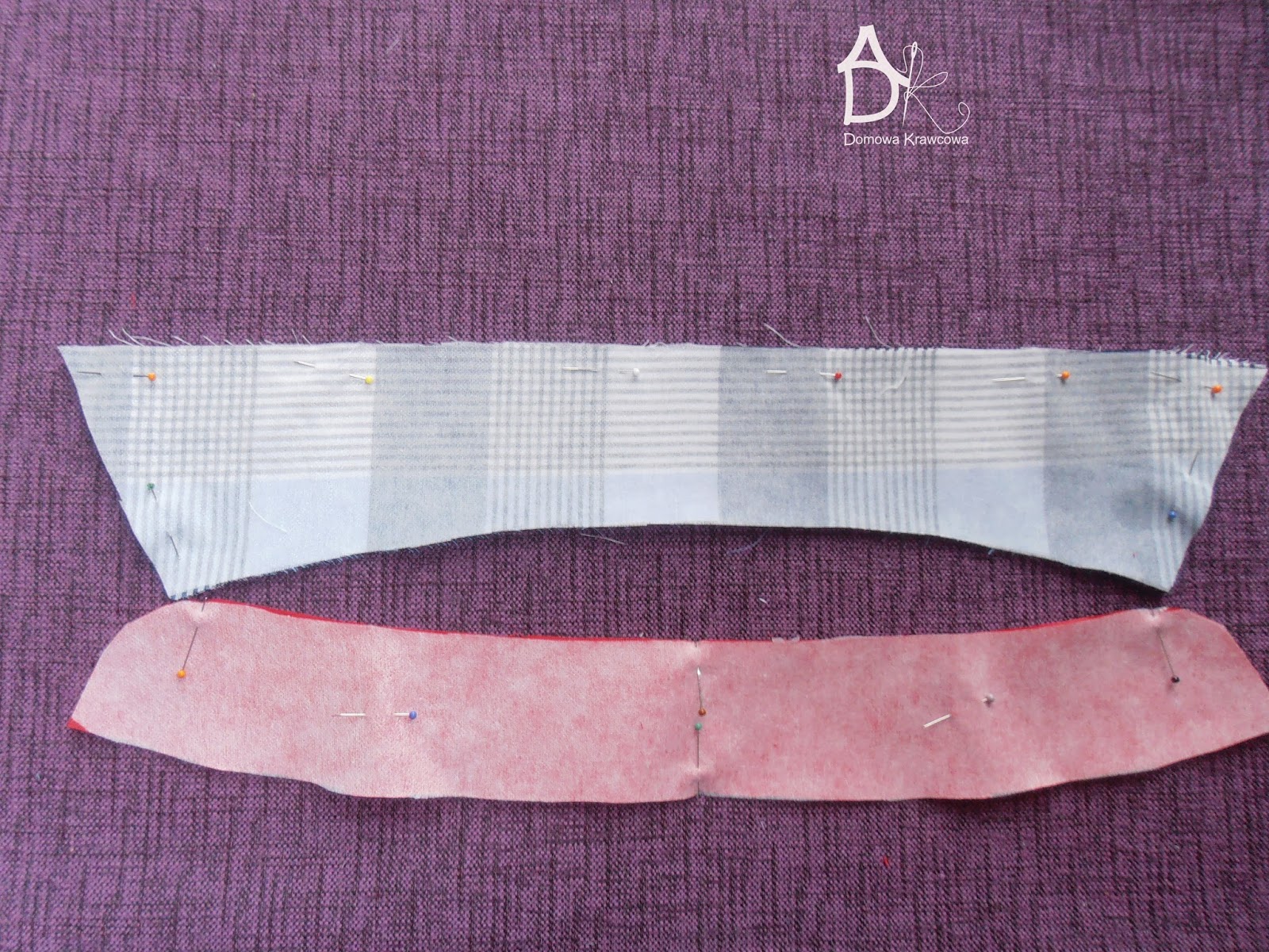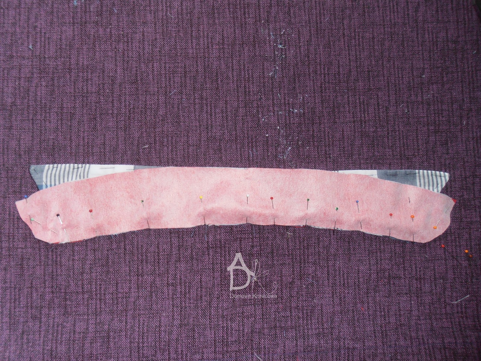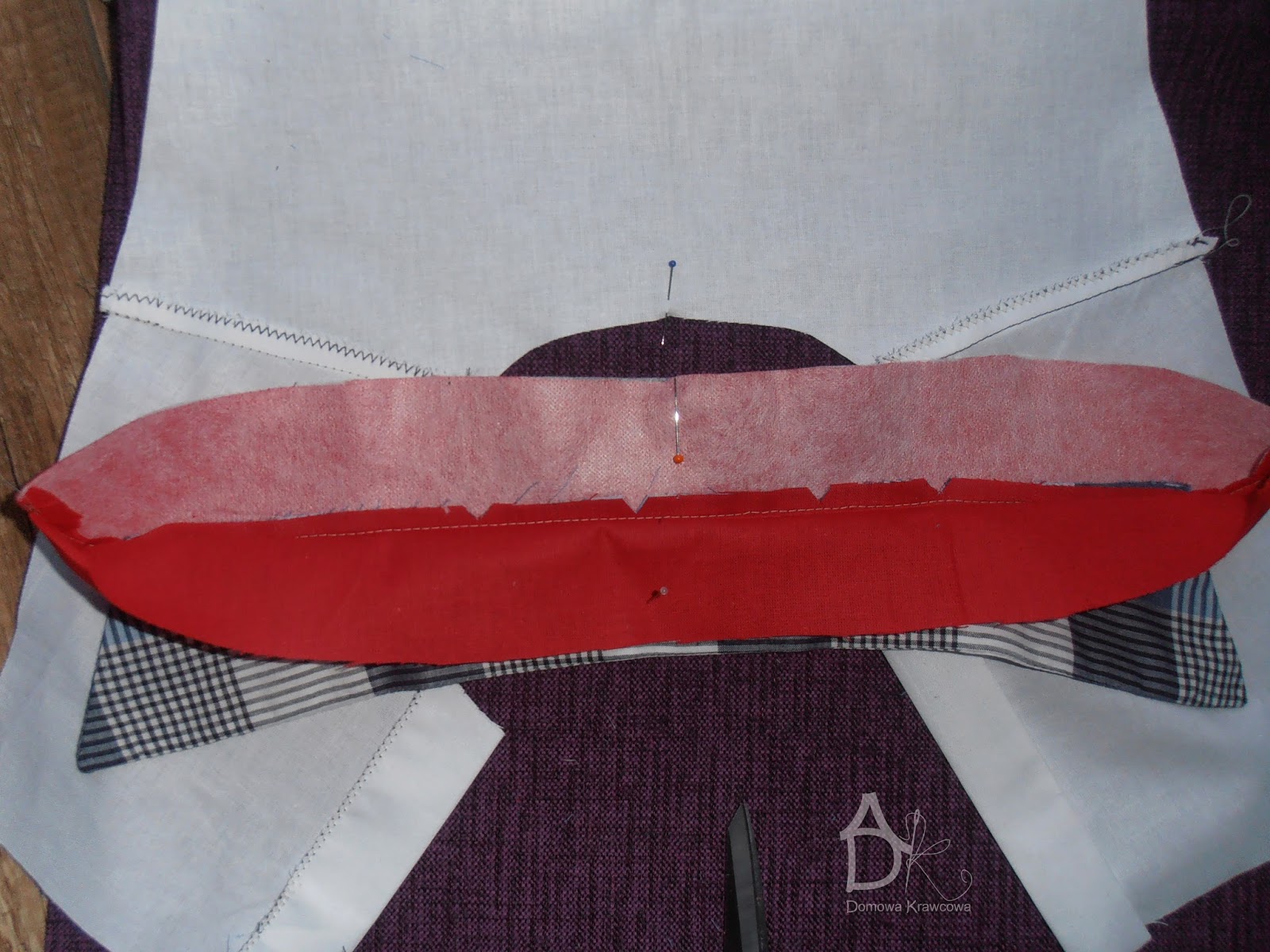 następnie spinam sobie szpilkami kołnierzyk który układam tak by spodnia część kołnierzyka była 1mm schowana pod wierzchnią częścią.