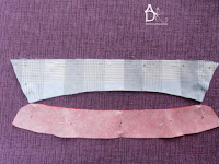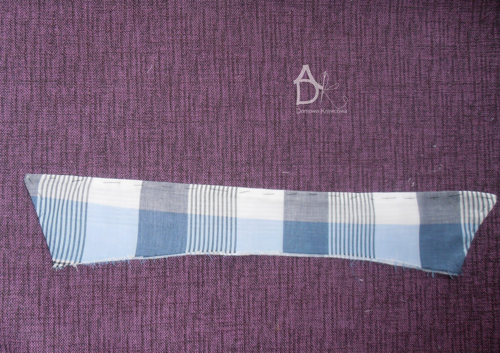 Na łuku wycinamy trójkąty by uzyskać ładne ułożenie i nie było marszczenia. Następnie odwracamy stójkę na prawą stronę sprawdzamy czy mamy równe długości łuku stójki i sprasowujemy.