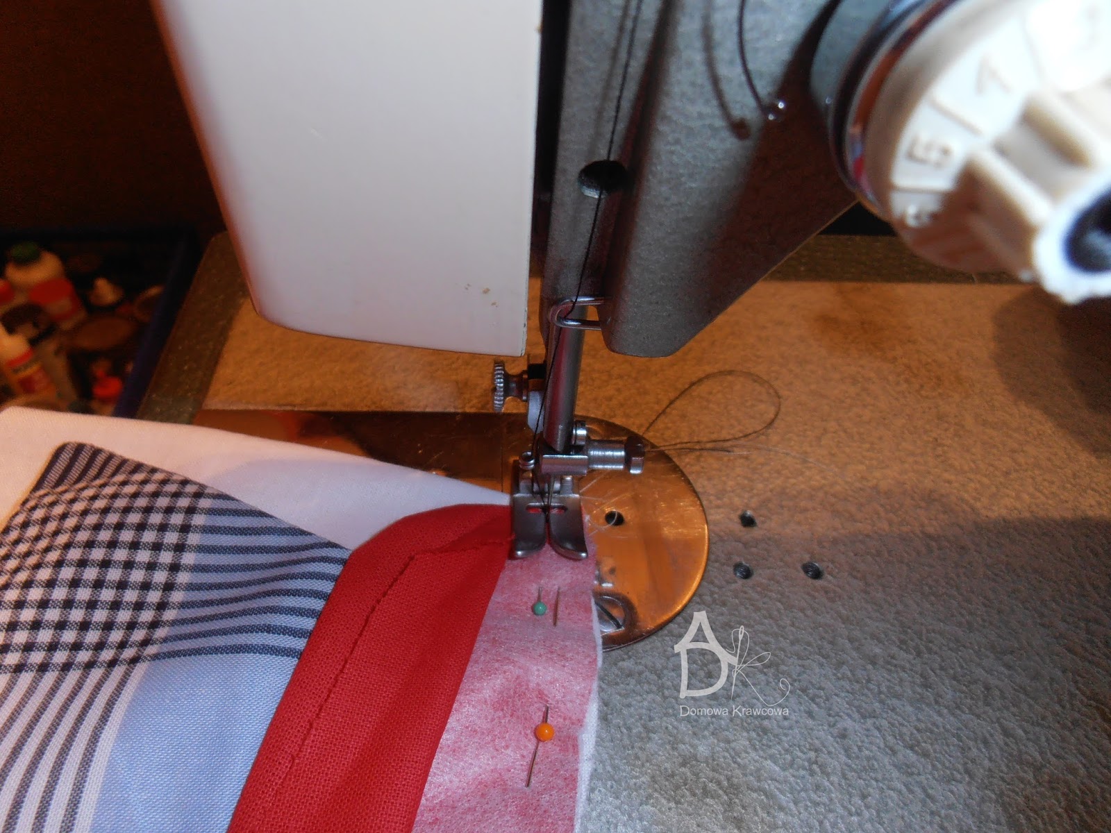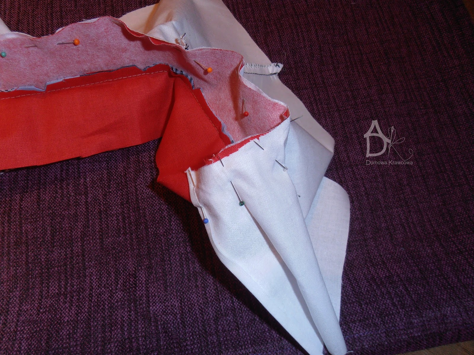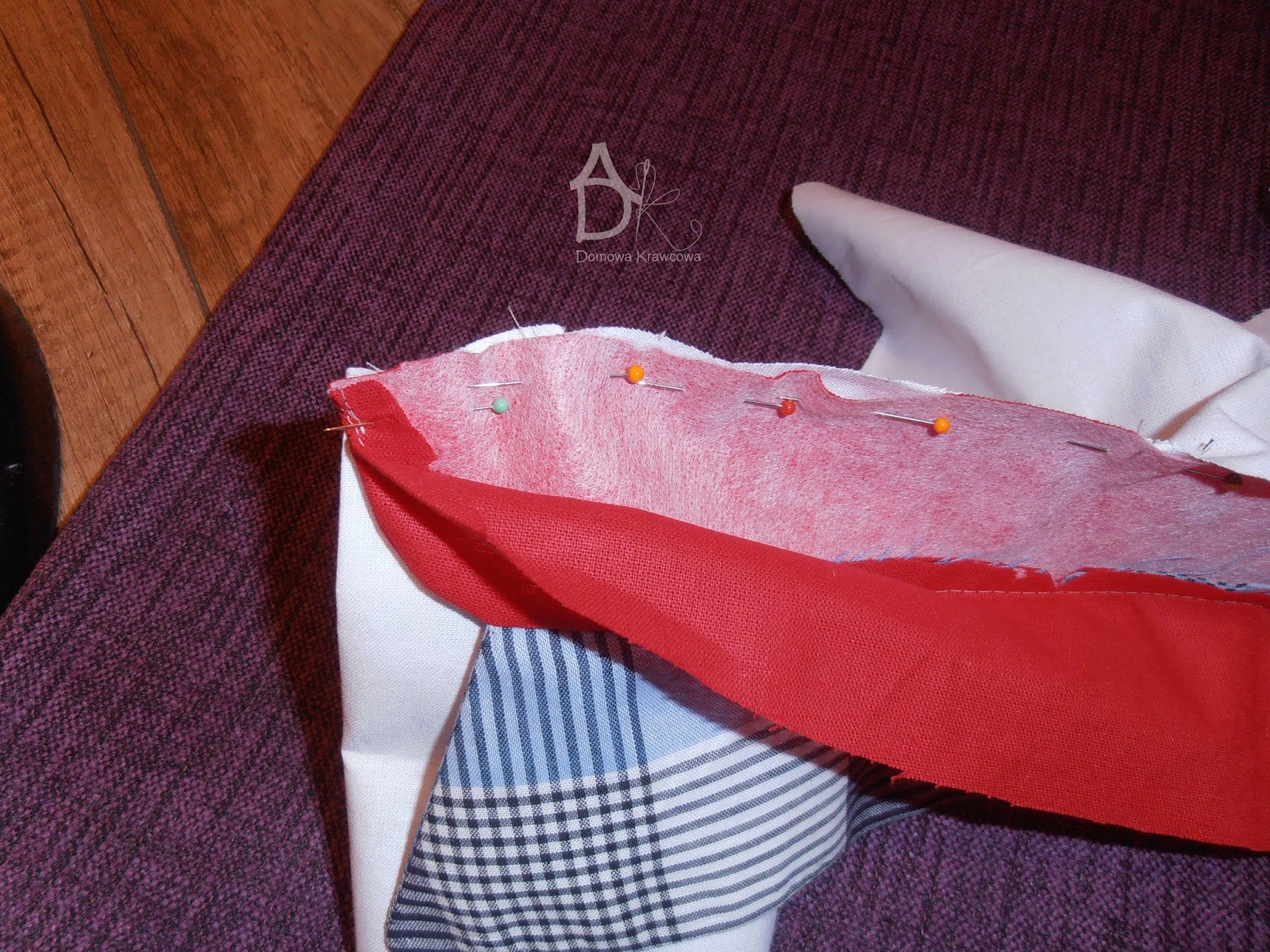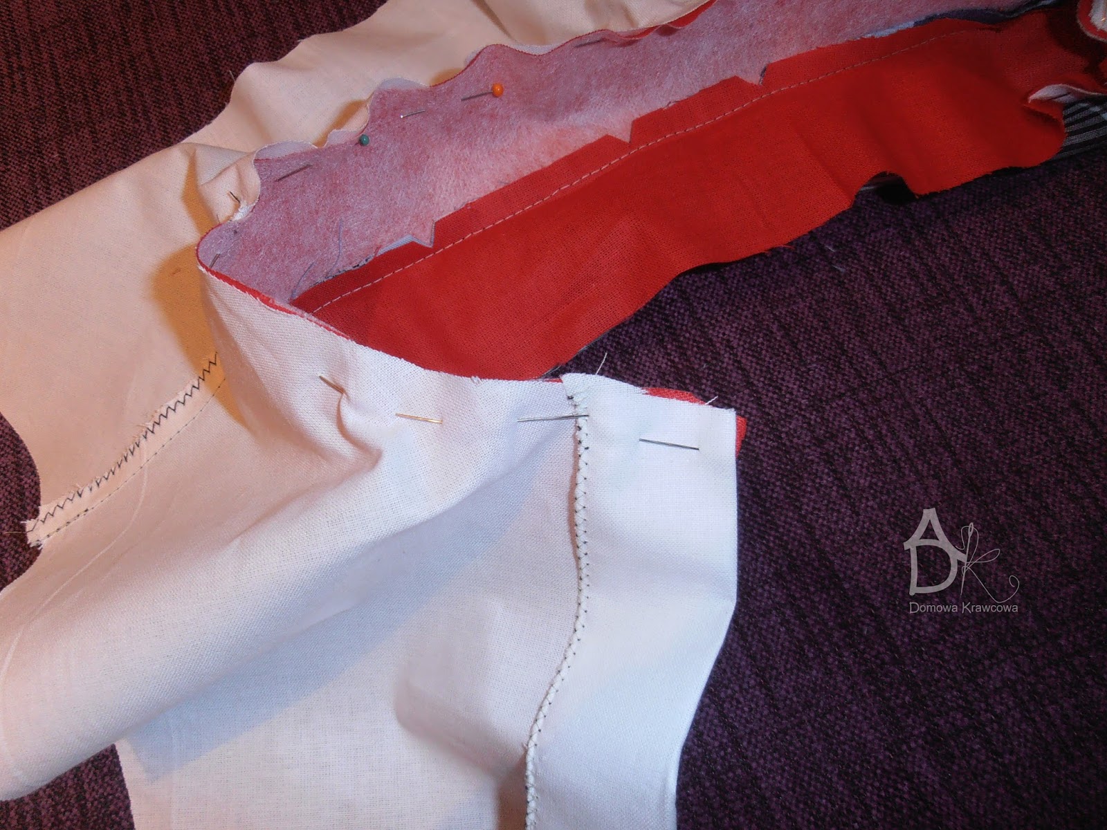 Wszystko dokładnie gęsto spinamy szpilkami możemy sfastrygować jeszcze.
