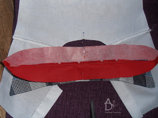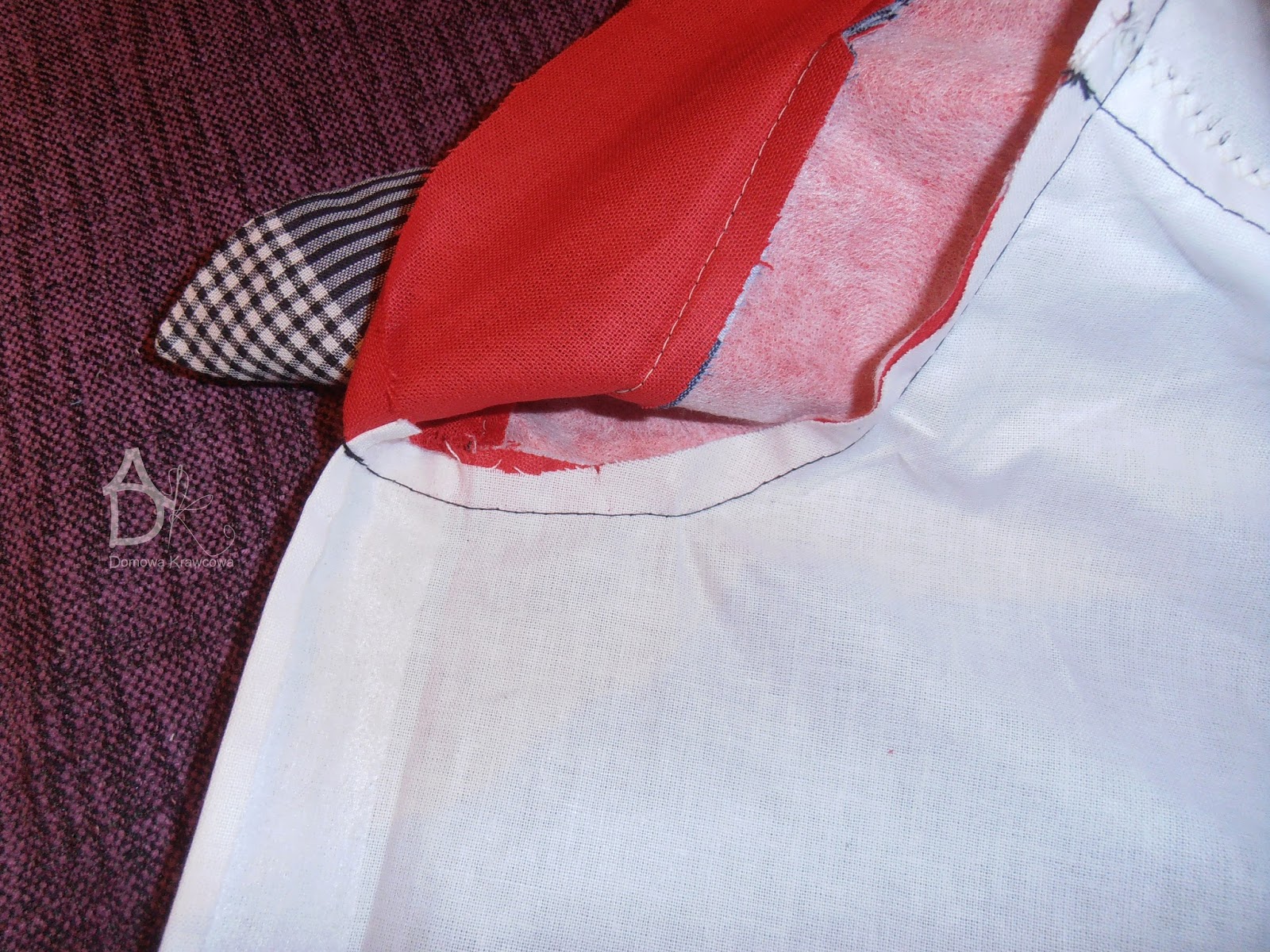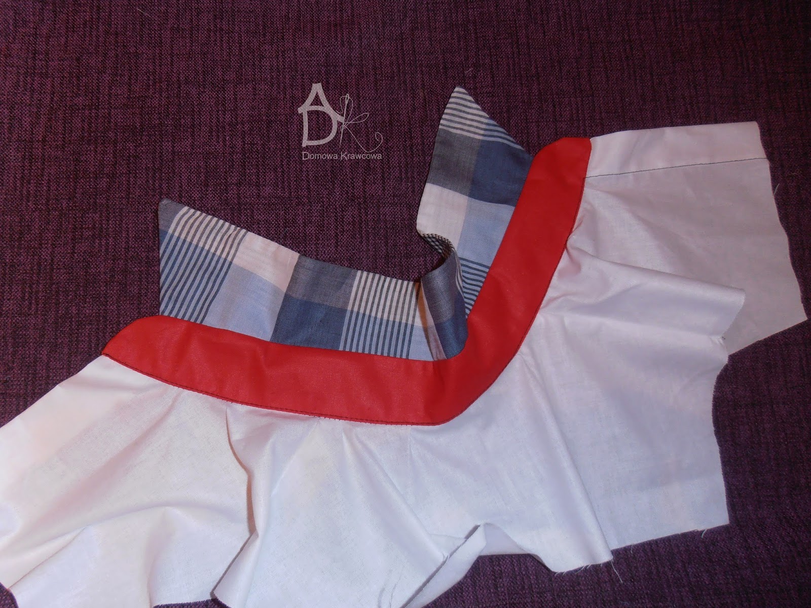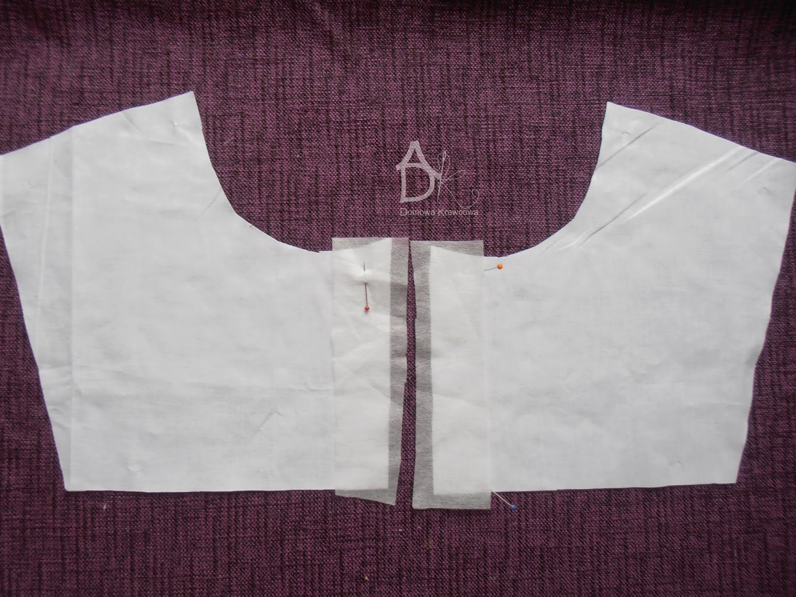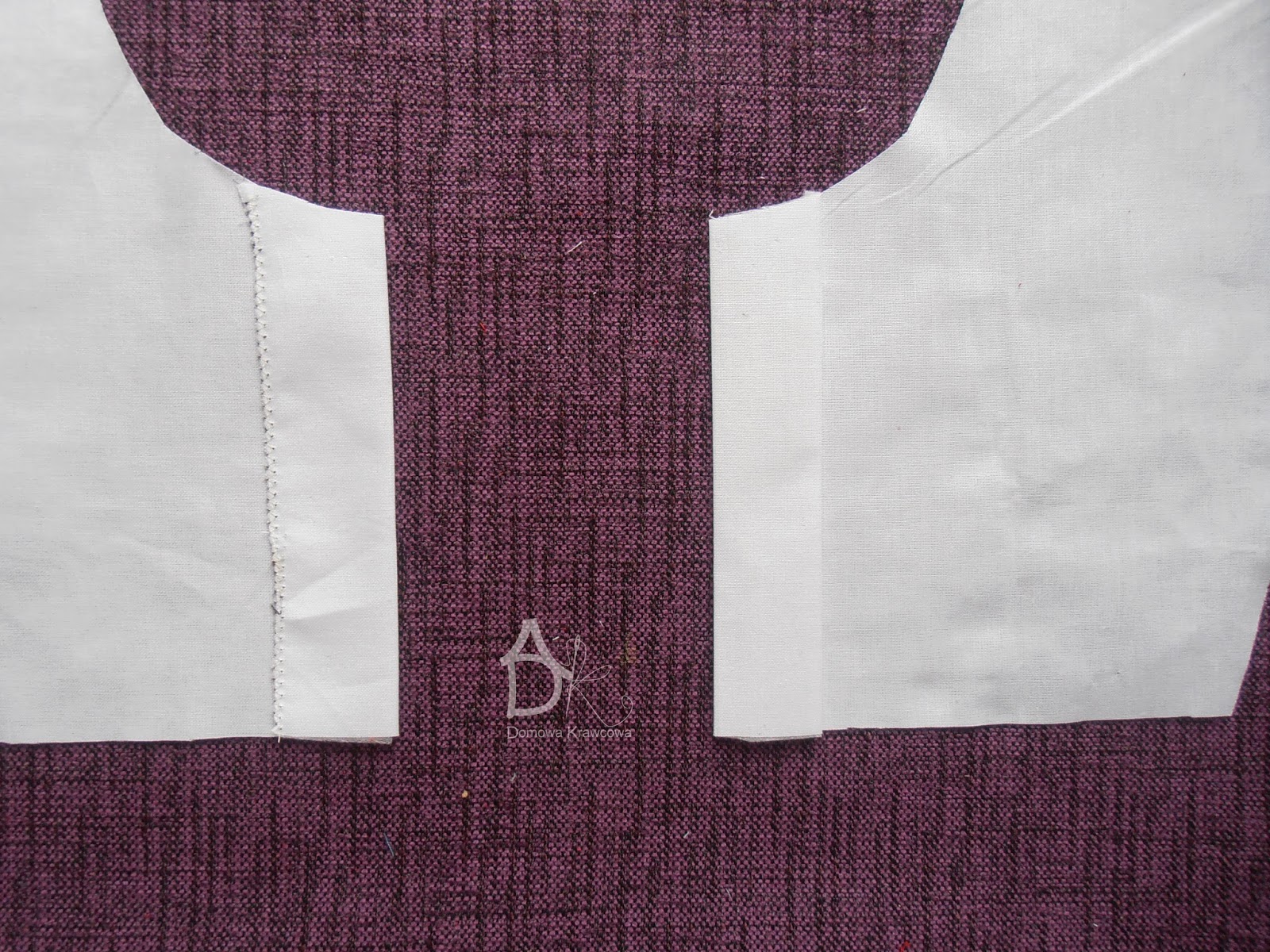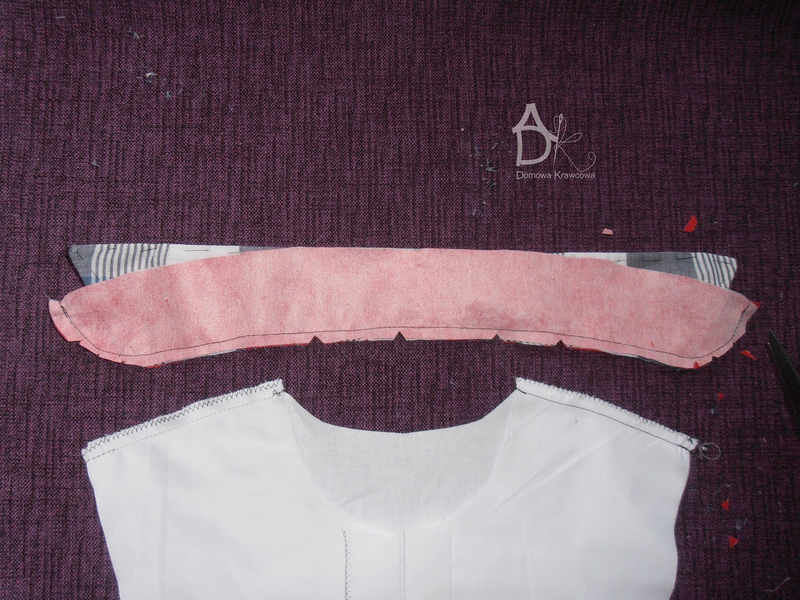 Jak wszystko mamy już pięknie poobcinane przypinamy stójkę środek do środka pleców (lewa strona pleców).
