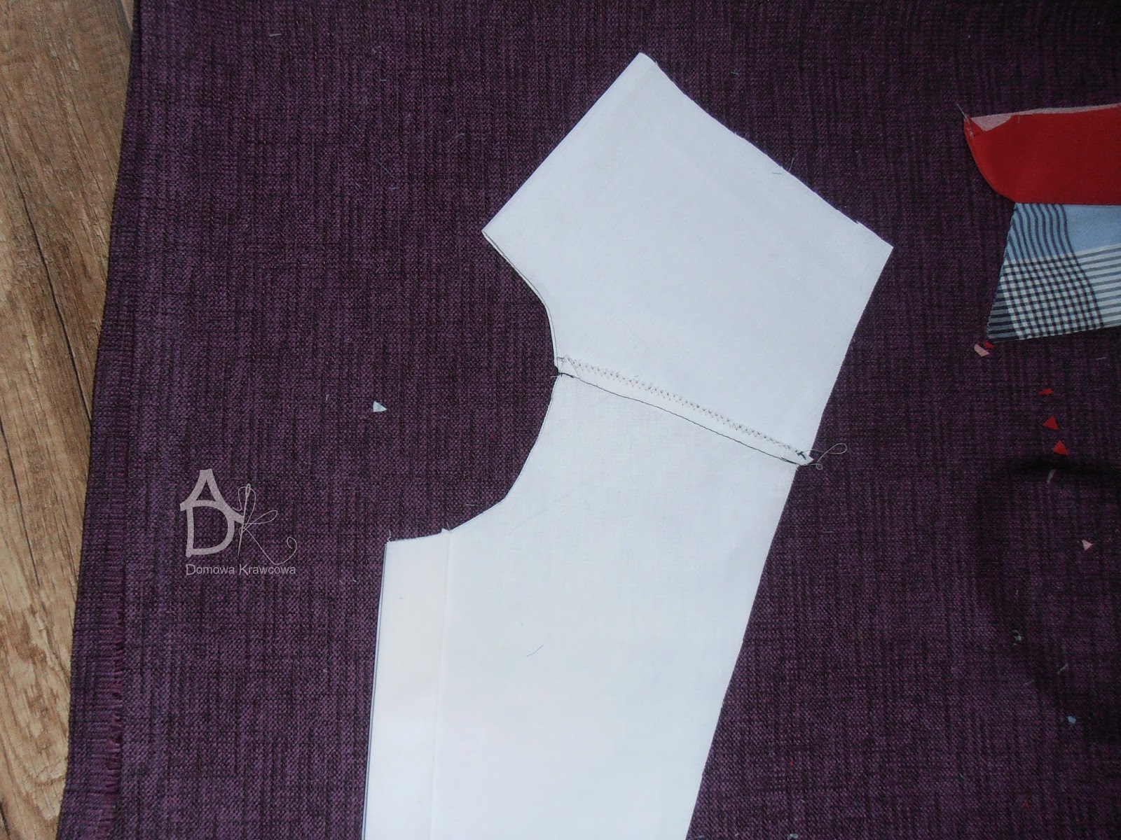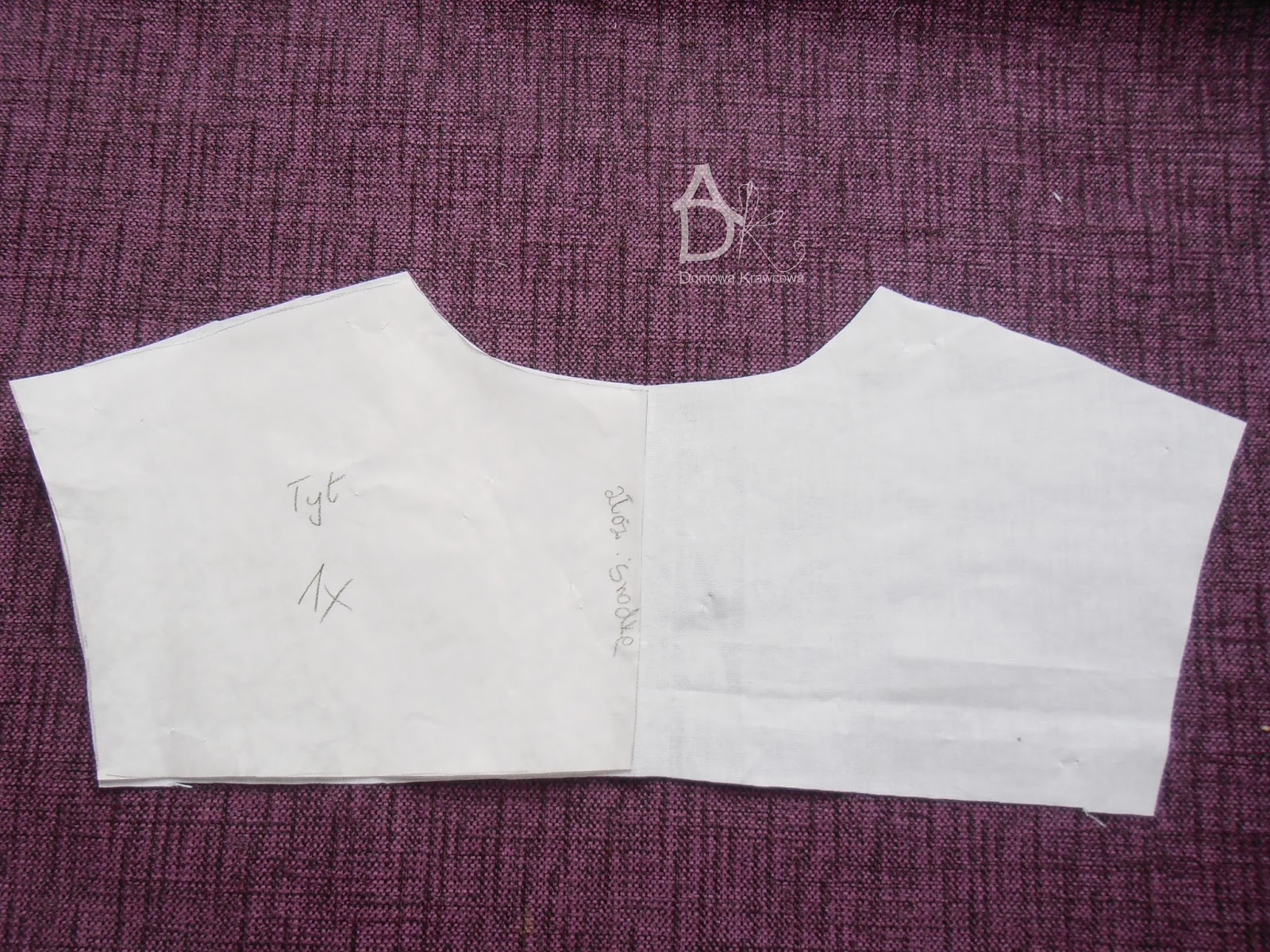 Kolejny etap to zeszycie ze sobą ramion i obrzucenie na overlocku lub zygzakiem. Składamy na pół obie części i sprawdzamy czy mamy ładne równe łuki.