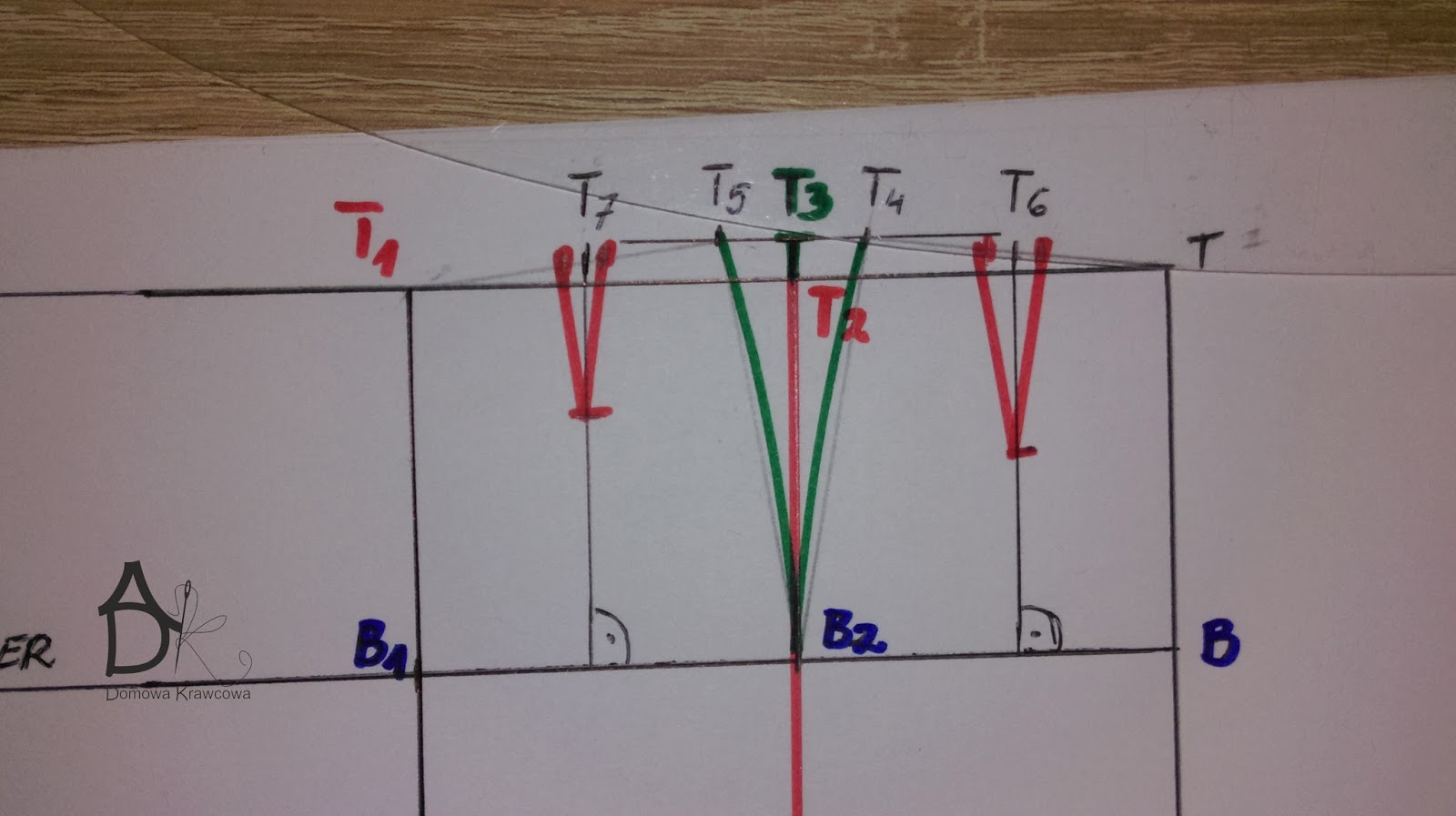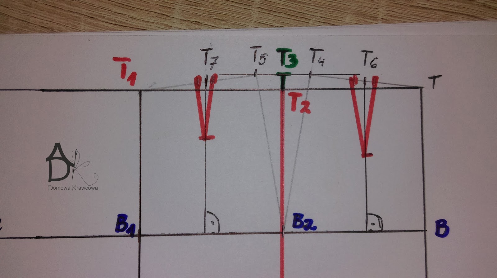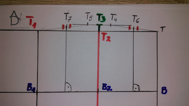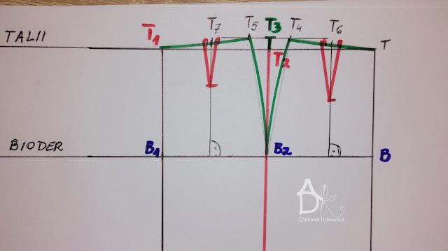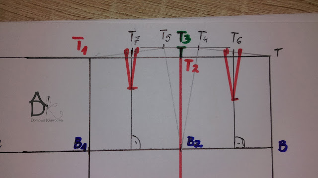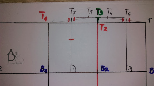 Wykreślany zaszewkę. Łączymy ze sobą pkt T5 z B2 i T4 z B2.