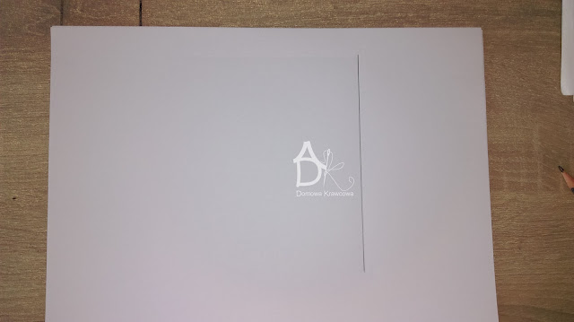Na arkuszu papieru po prawej stronie wykreślamy linię pionową jest to linia środka tyłu spódnicy.