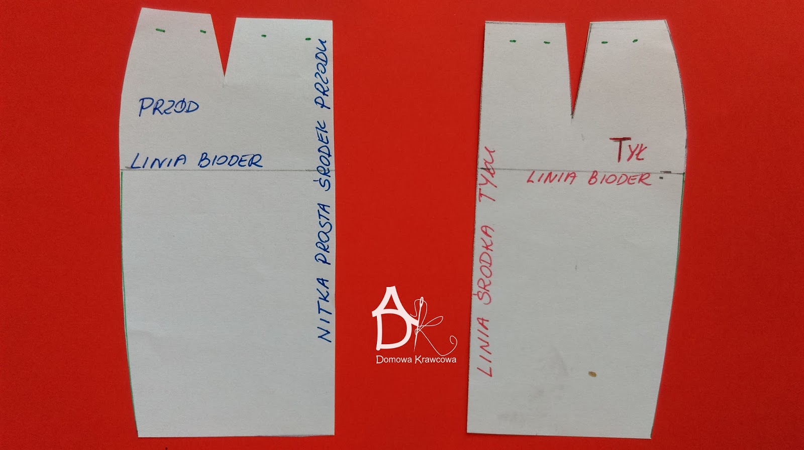 Nadmiar papieru poza zieloną kreską obcinamy. Jeżeli lubimy nosić spódniczki na linii pasa to tak możemy zostawić formę. Ta forma jest bez rozporka  czyli w takie postaci materiał który użyjemy do uszycia musi być rozciągliwy. w przeciwnym wypadku będzie trudno nam zrobić krok.