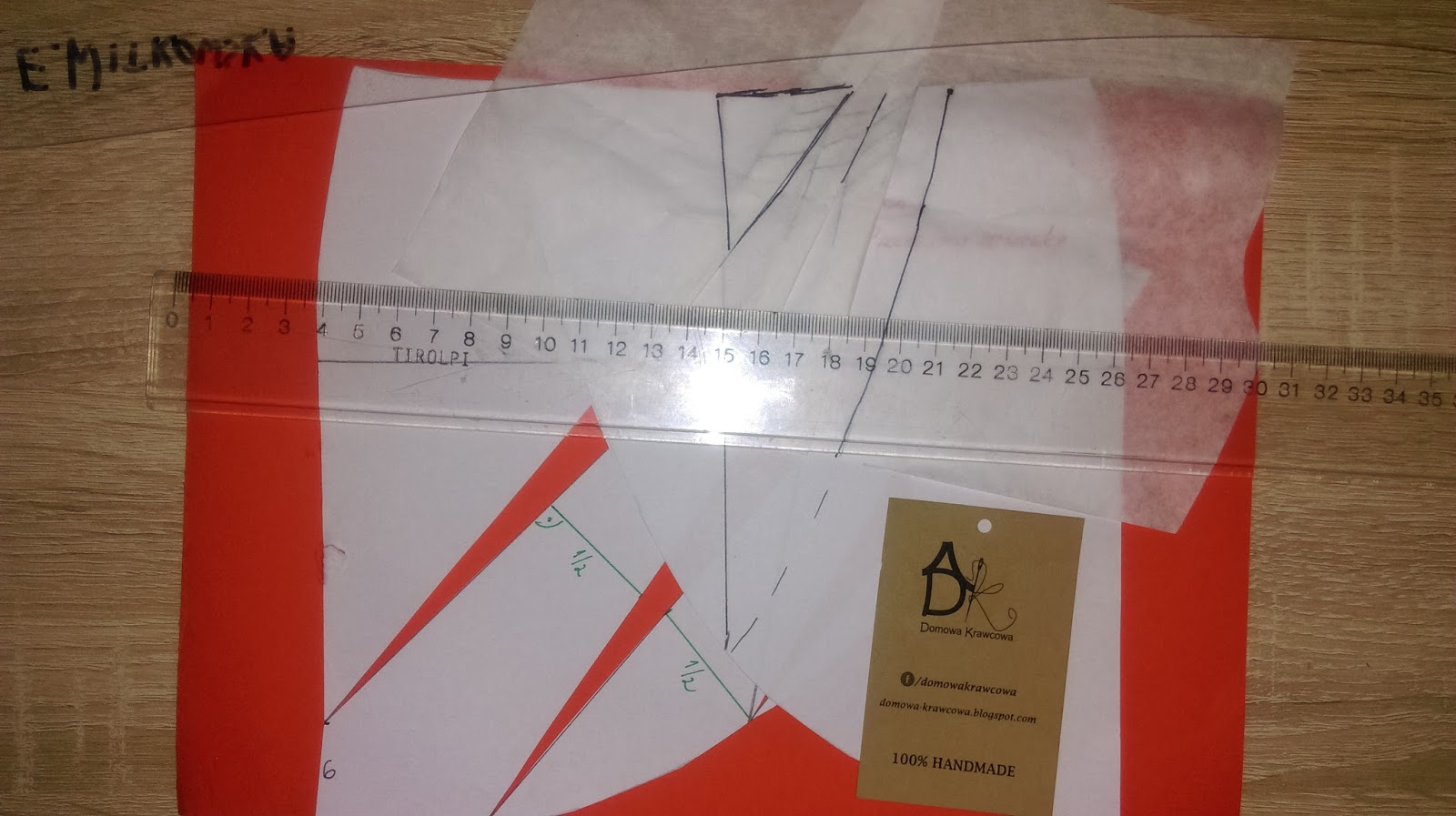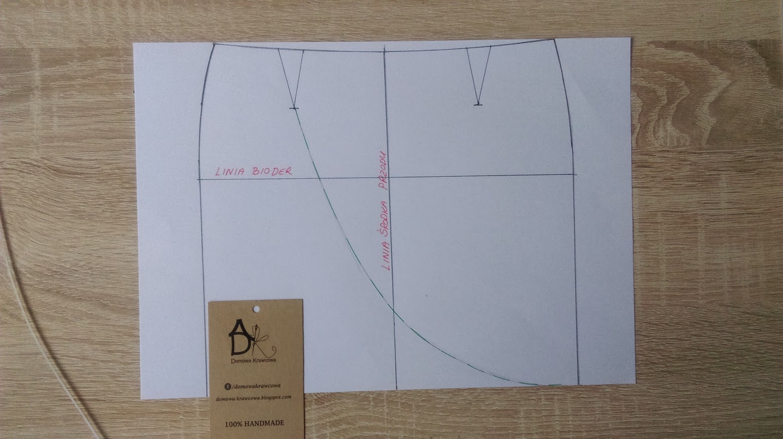 Jak widać znowu musimy wyjściowe modelowanie zacząć od formy podstawowej spódnicy. Bierzemy papier typu pergamin i odrysowujemy formy podstawowe przodów 2 sztuki.