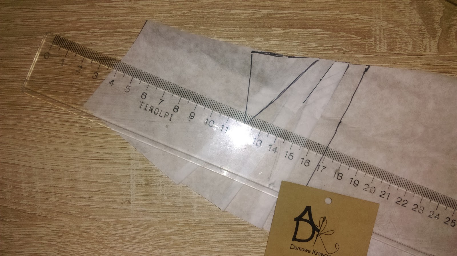 Nakładam pergamin na naszą porozcinaną formę i odrysowuje ząbki.