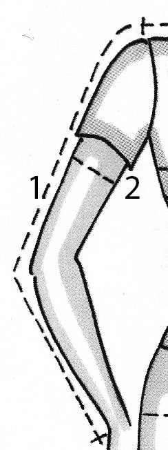 mierzymy przy lekko zgiętej ręce od główki rękawa do nadgarstka ( pomiar nr 1),