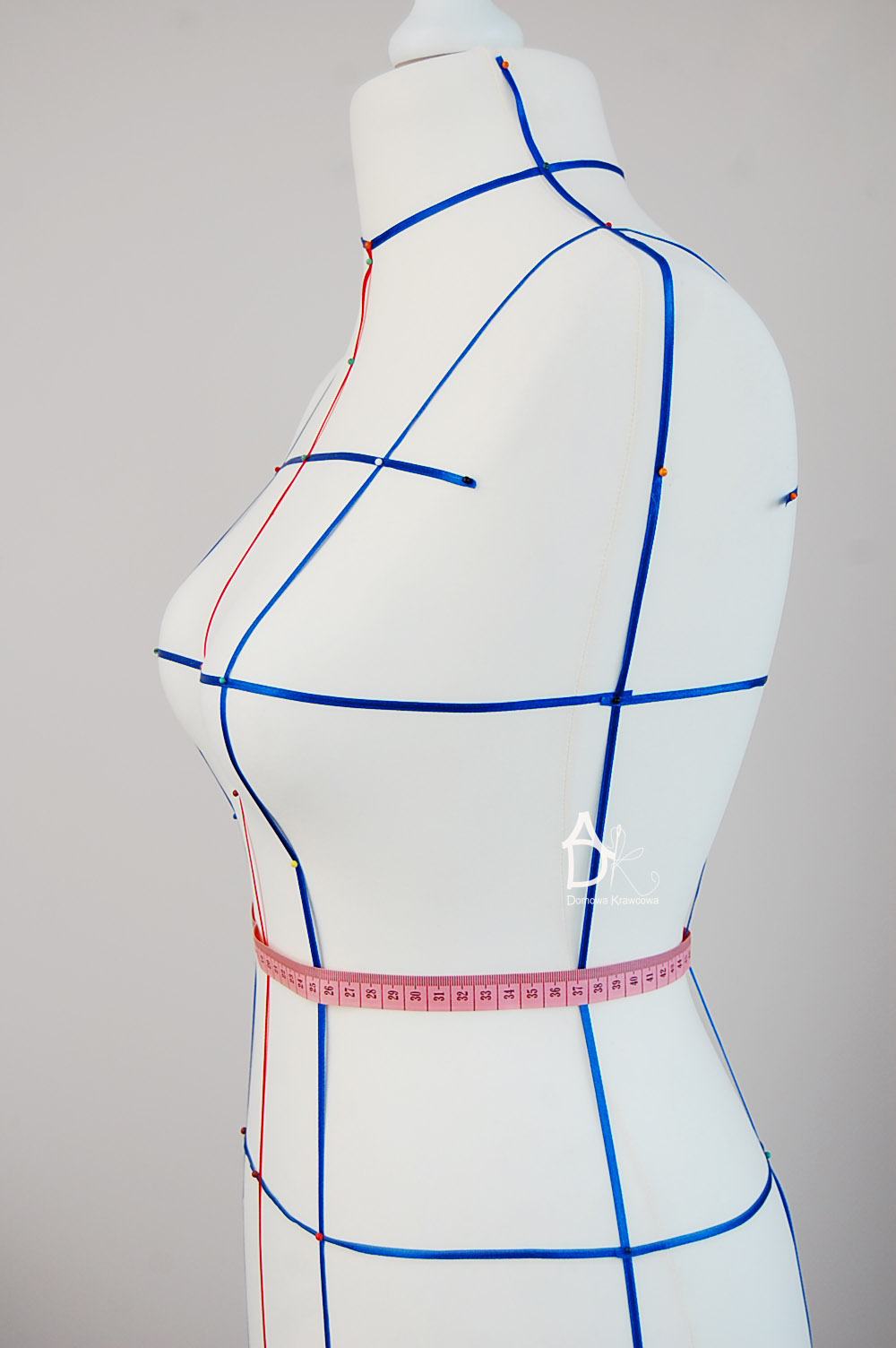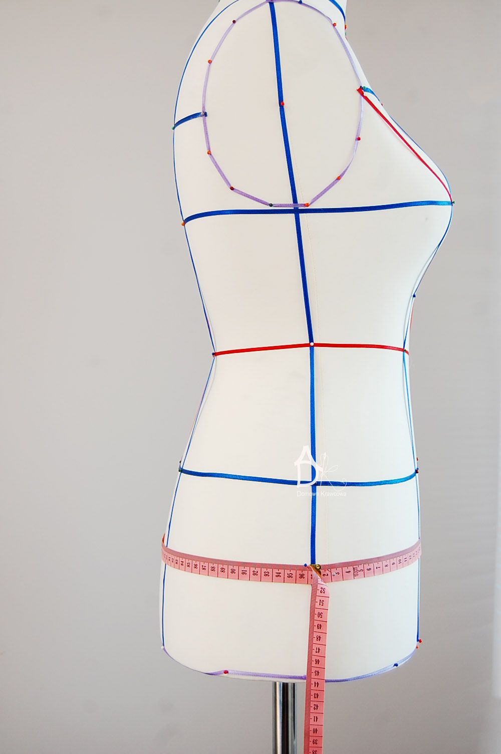 W talii przewiązujemy tasiemkę lub taśmą krawiecką.