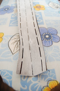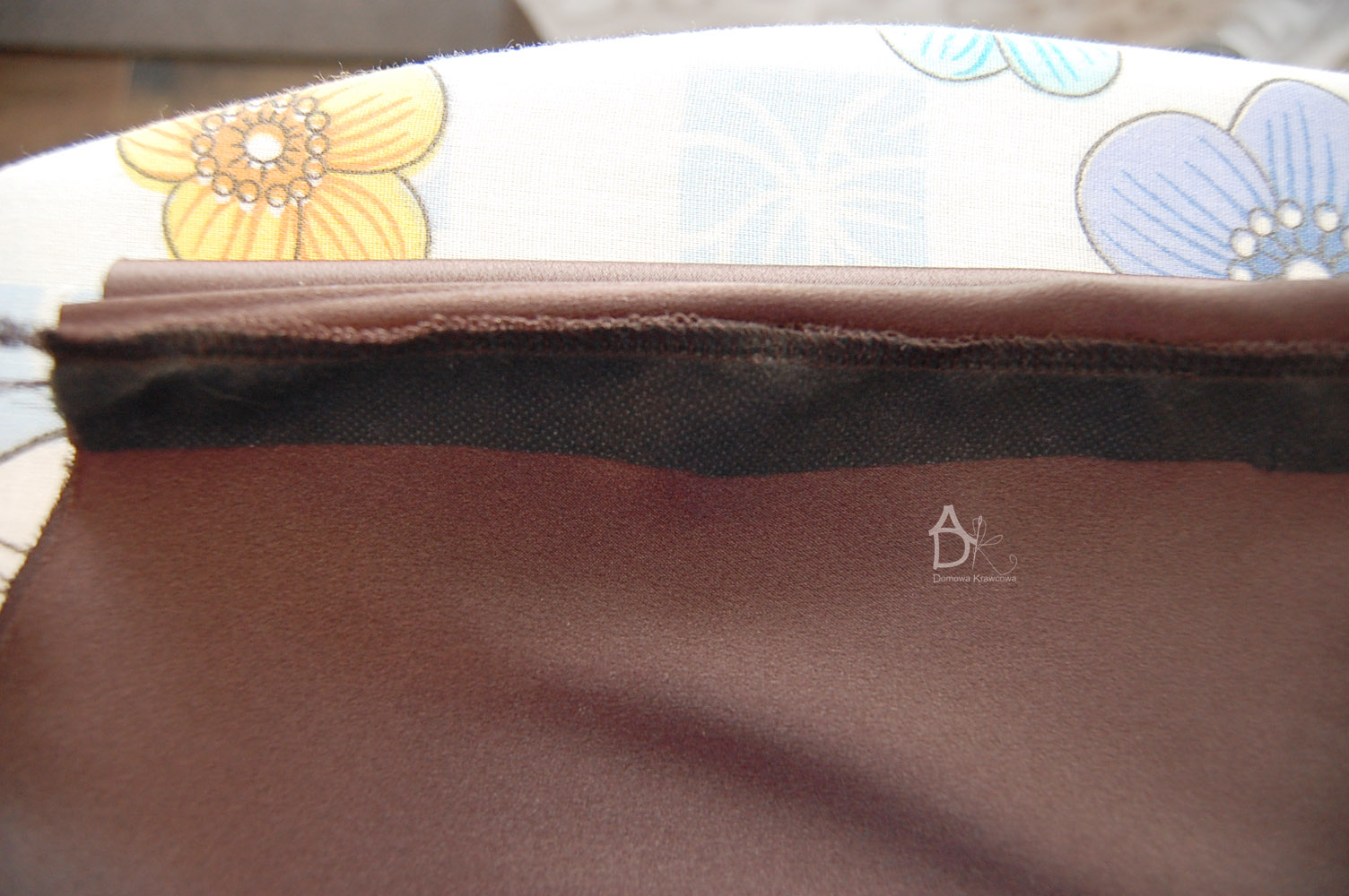 Podklejamy go specjalnym klejonką do pasków lub zwykłą flizeliną.