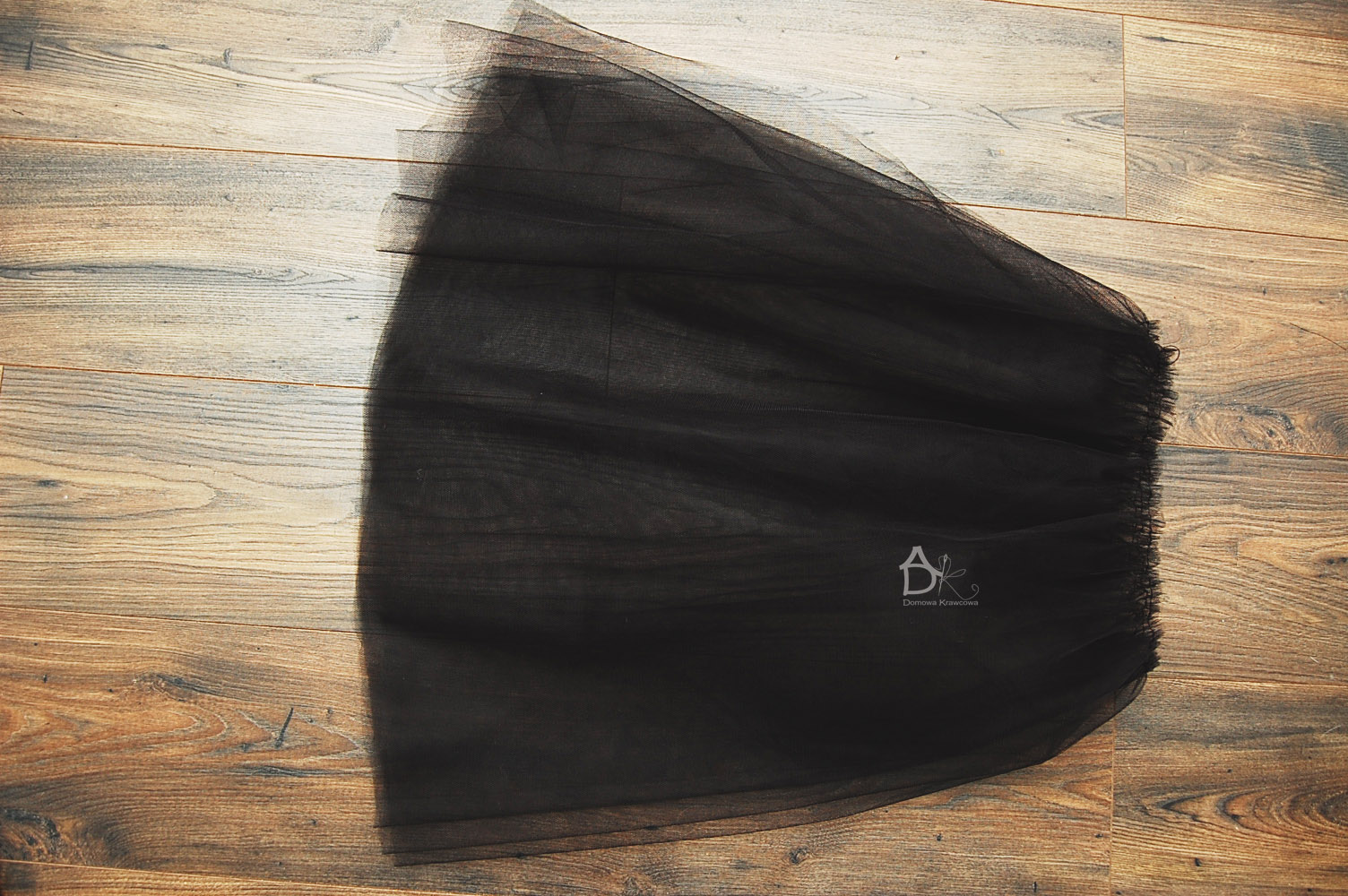 Tiul przecinamy po szerokości 280cm, o długości spódnicy u mnie 60 cm.
