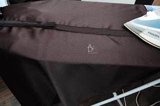 Teraz rozprasowujemy szewek i obrzucamy overlockem dół spódnicy. i tez przeprasowujemy.