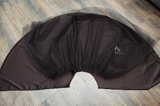 - tkaninę wierzchnią czyli tiul ja mam dwie warstwy czyli dwa razy długość 120 cm, szerokości 280 cm,