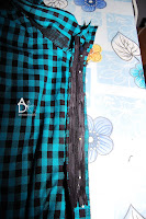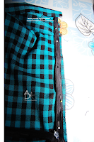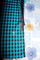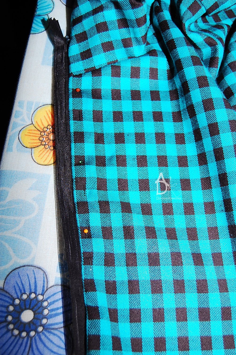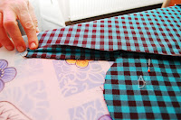 boki spódnicy prawą do prawej w moim przypadku kratka w kratkę. Spinamy