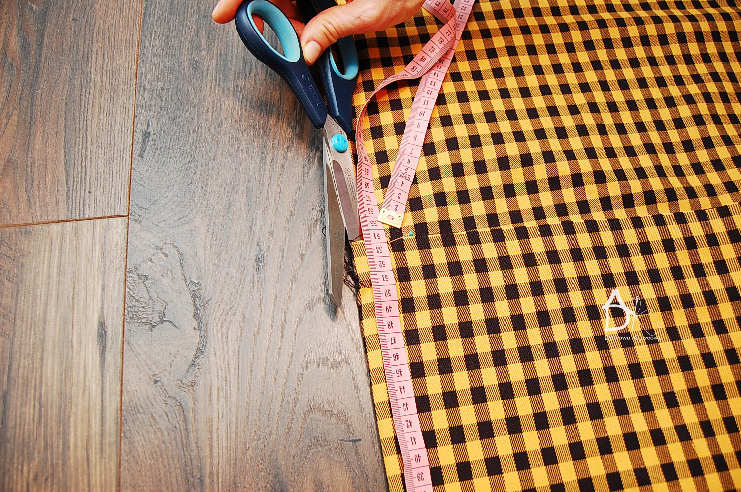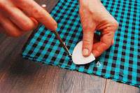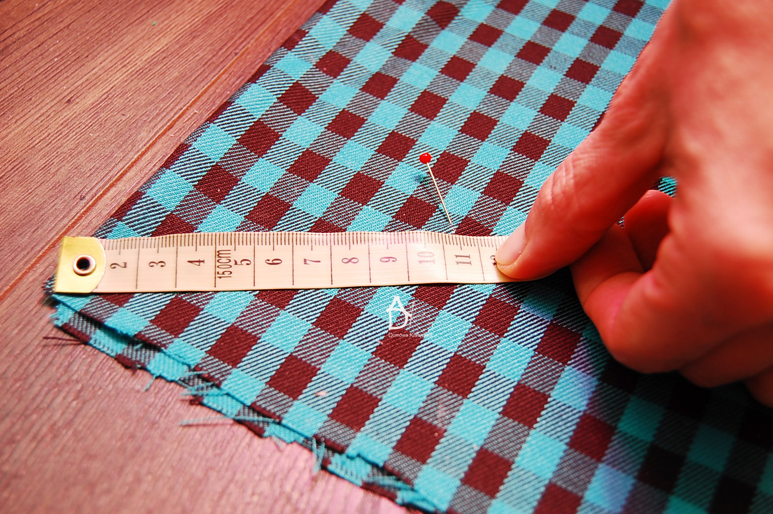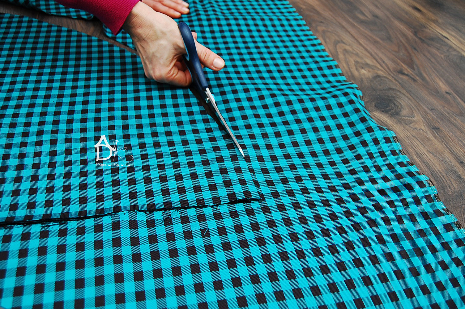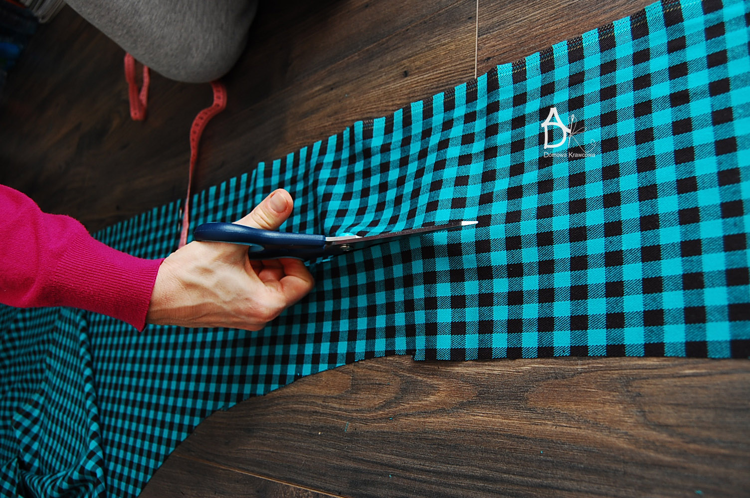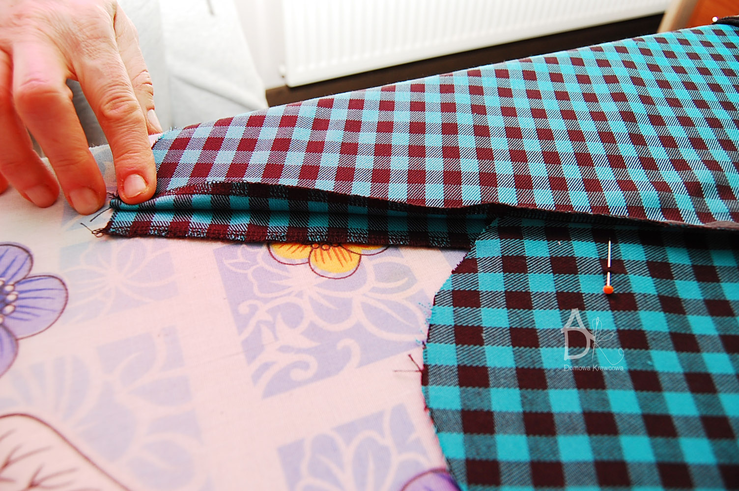 w przypadku kratki dopasować sobie kratkę w kratkę . Następnie składamy tkaninę