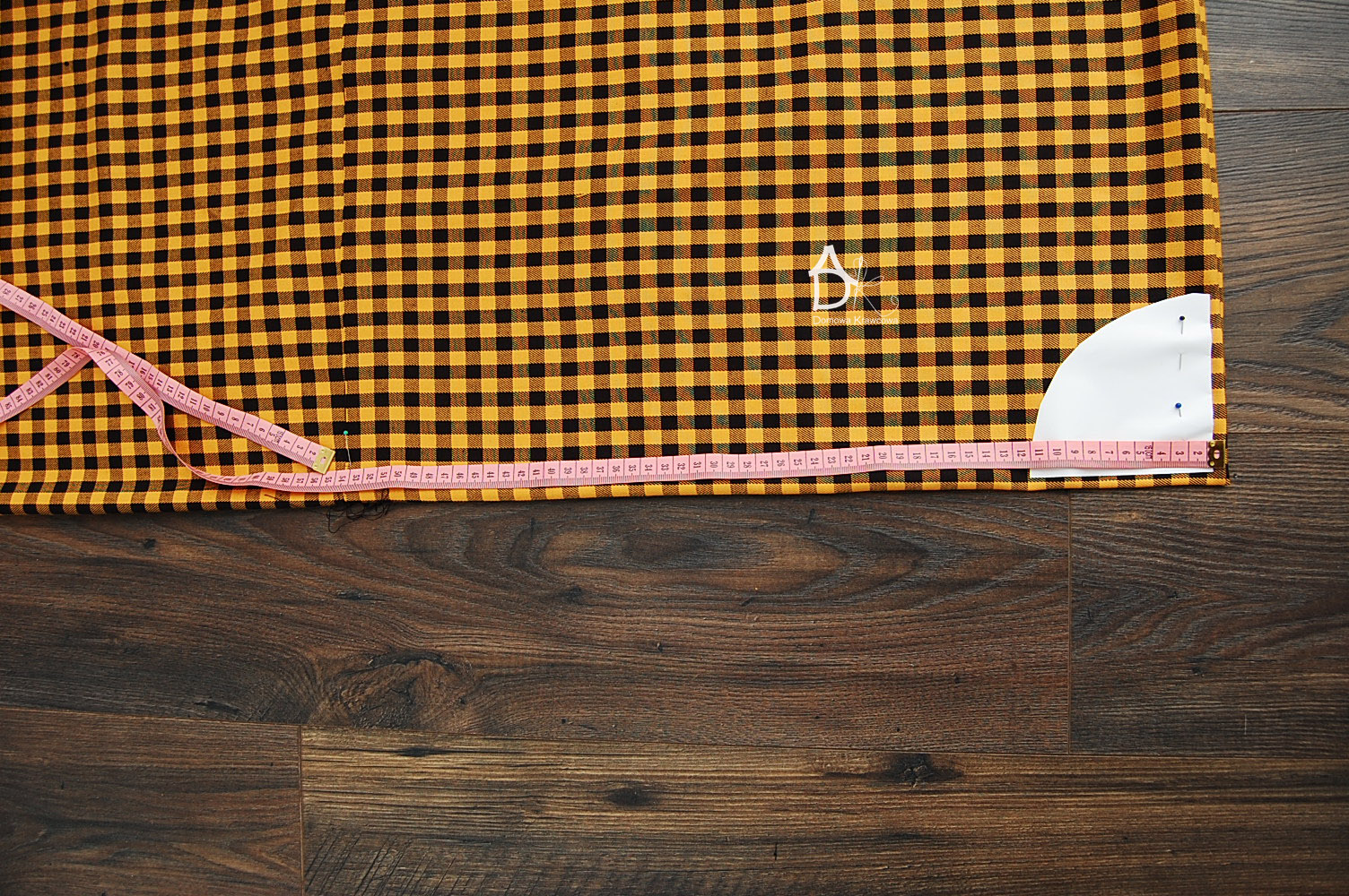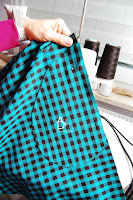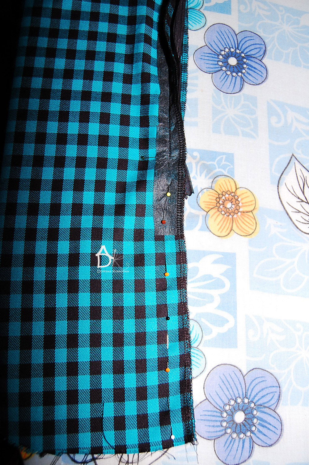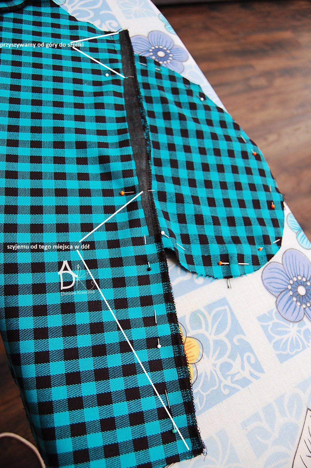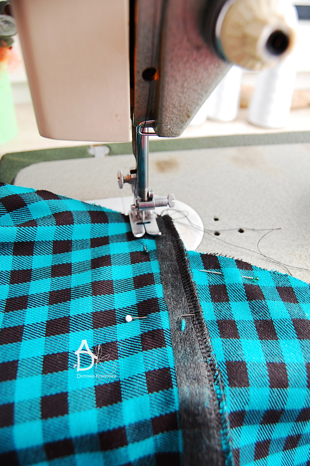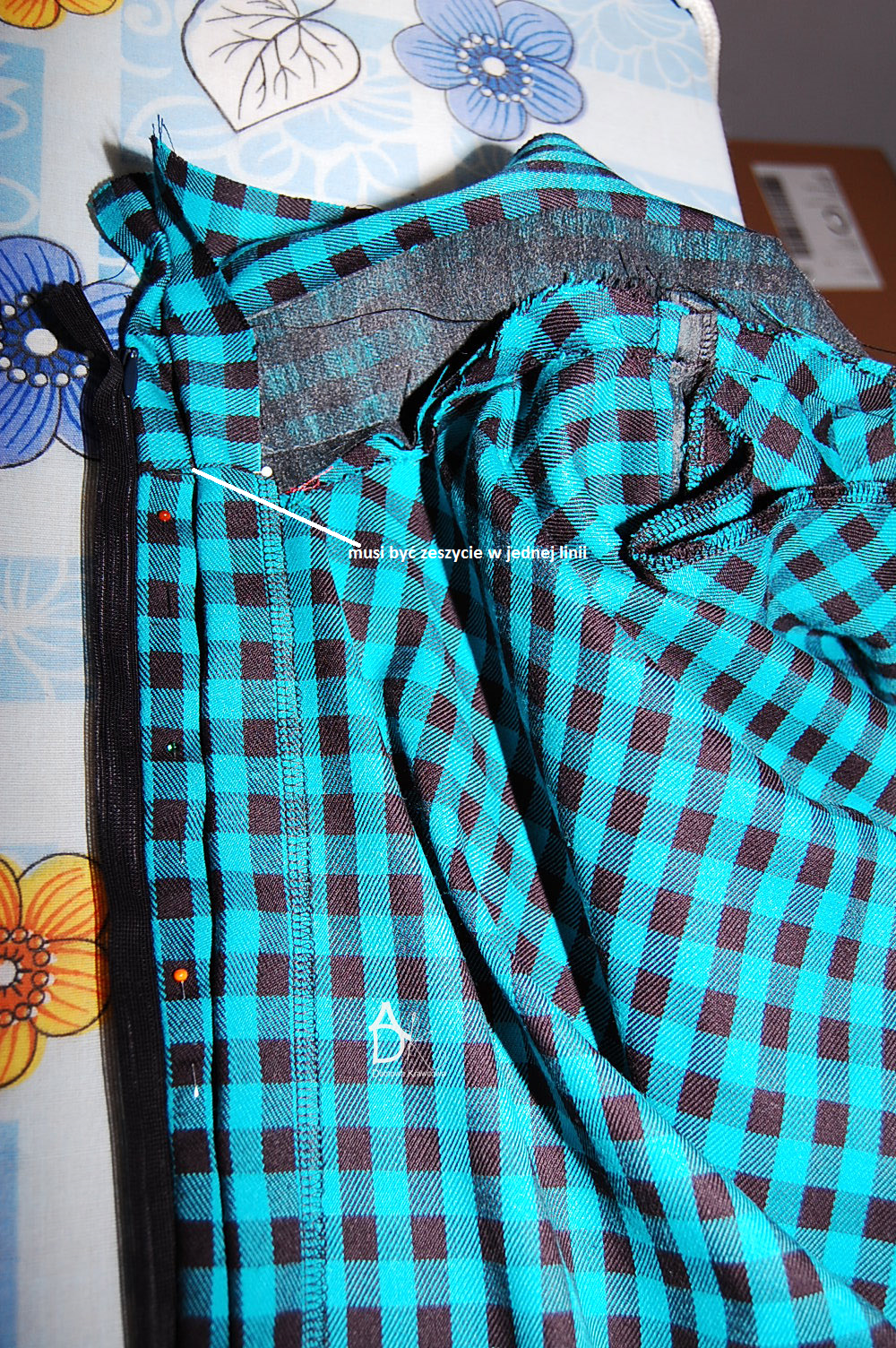spódnicy. W moim przypadku kratka w kratkę. Przyszywamy od szpilki poziomej do