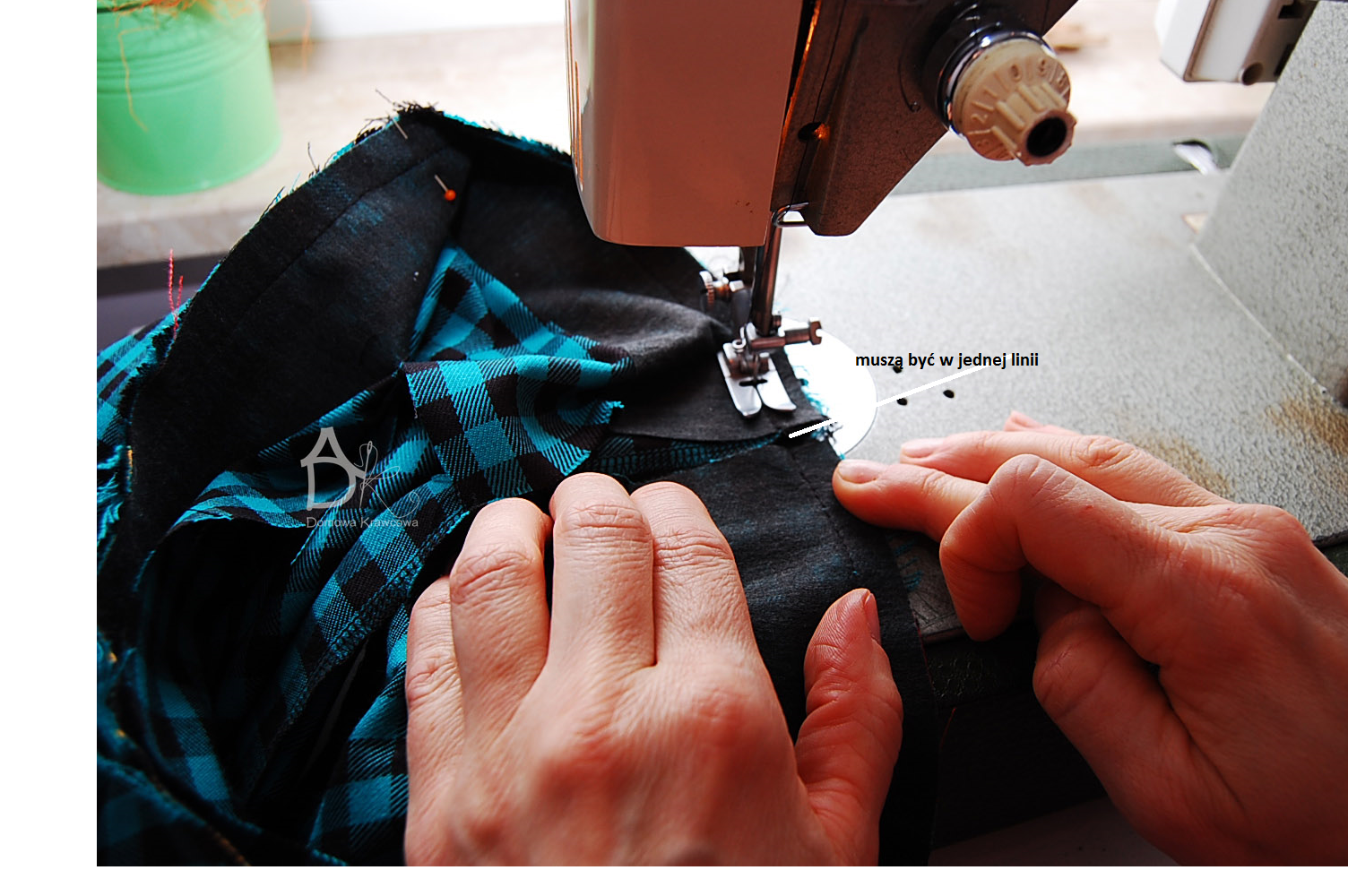 ściegiem zygzakowym. Operację powtarzamy przy obu kieszeniach. Prasujemy.