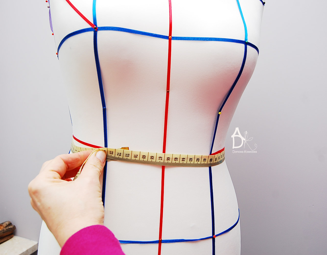linijką 10,4cm i kreślę ¼ koła, wycinam i mam formę podkroju talii. Jeżeli nie