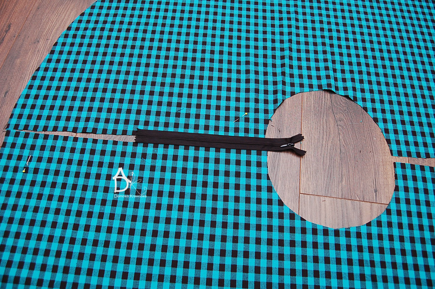 na tej samej wysokości. Przypinamy lub fastrygujemy. Rozpinamy zamek i wkładamy