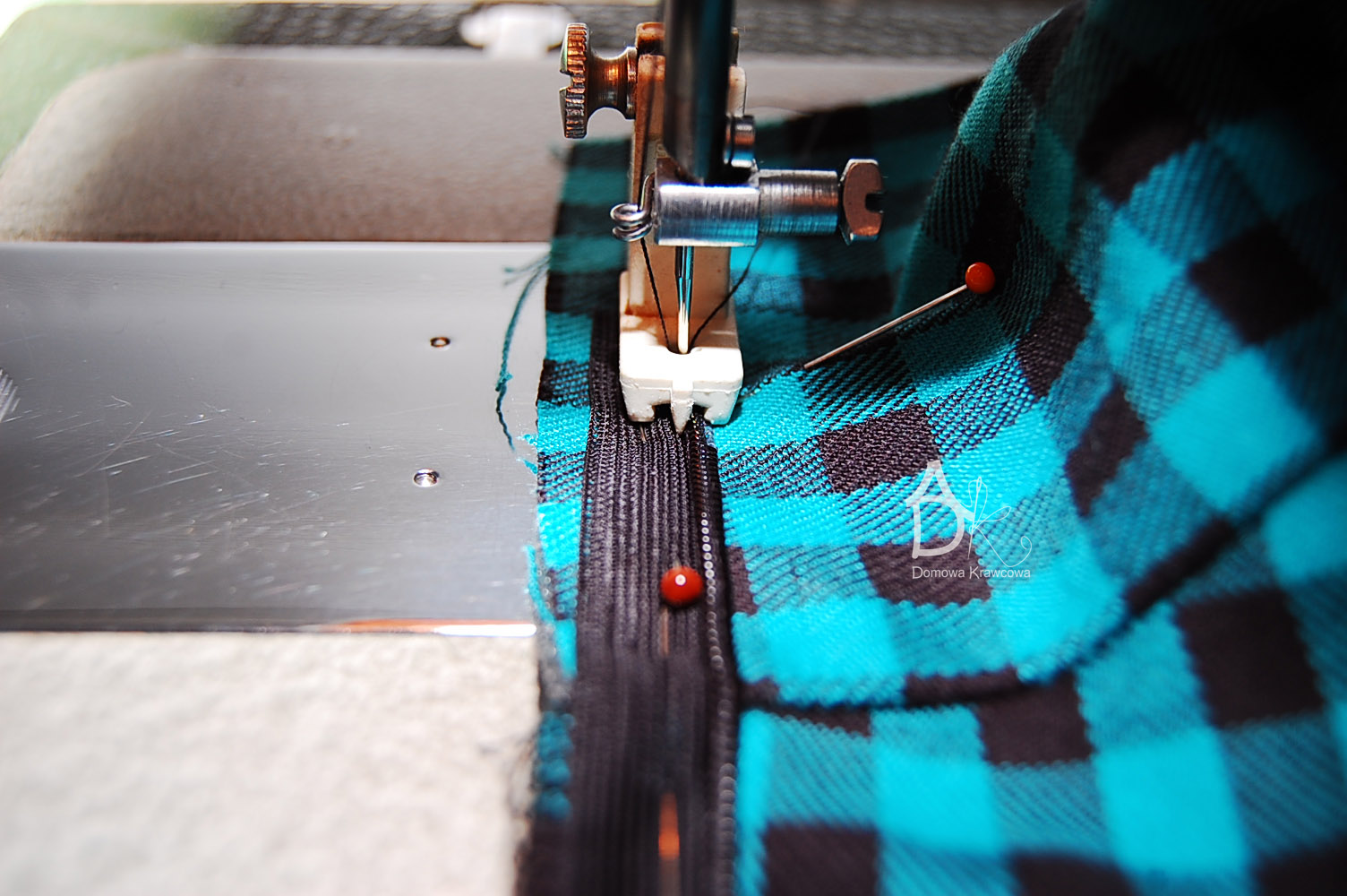 odwracamy na lewą stronę przypinamy do zamka od razy zaginamy podwinięcie i