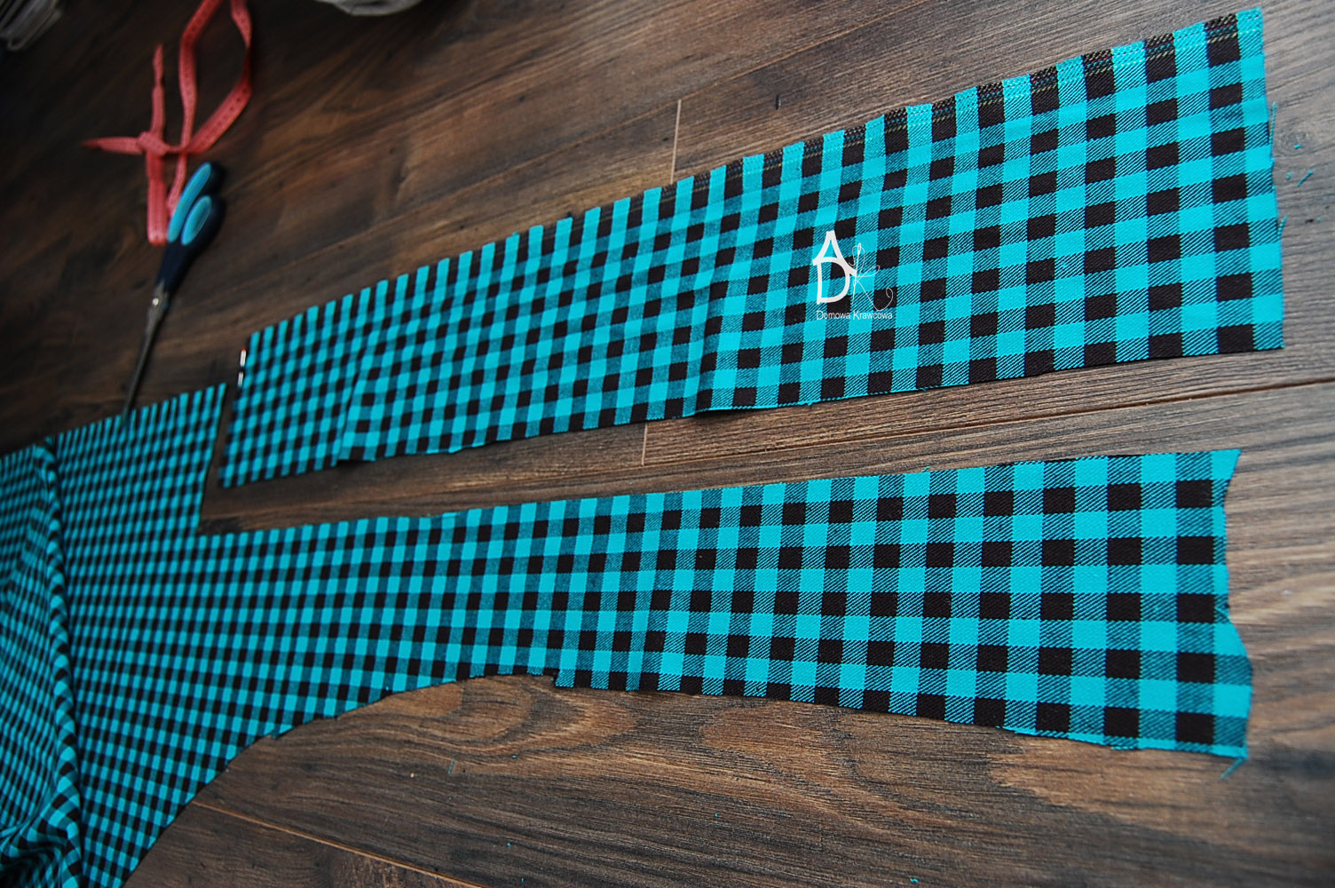 szerokość paska 10-12 cm jak chcesz. Czyli wycinamy prostokąt 53cm na 12cm.
