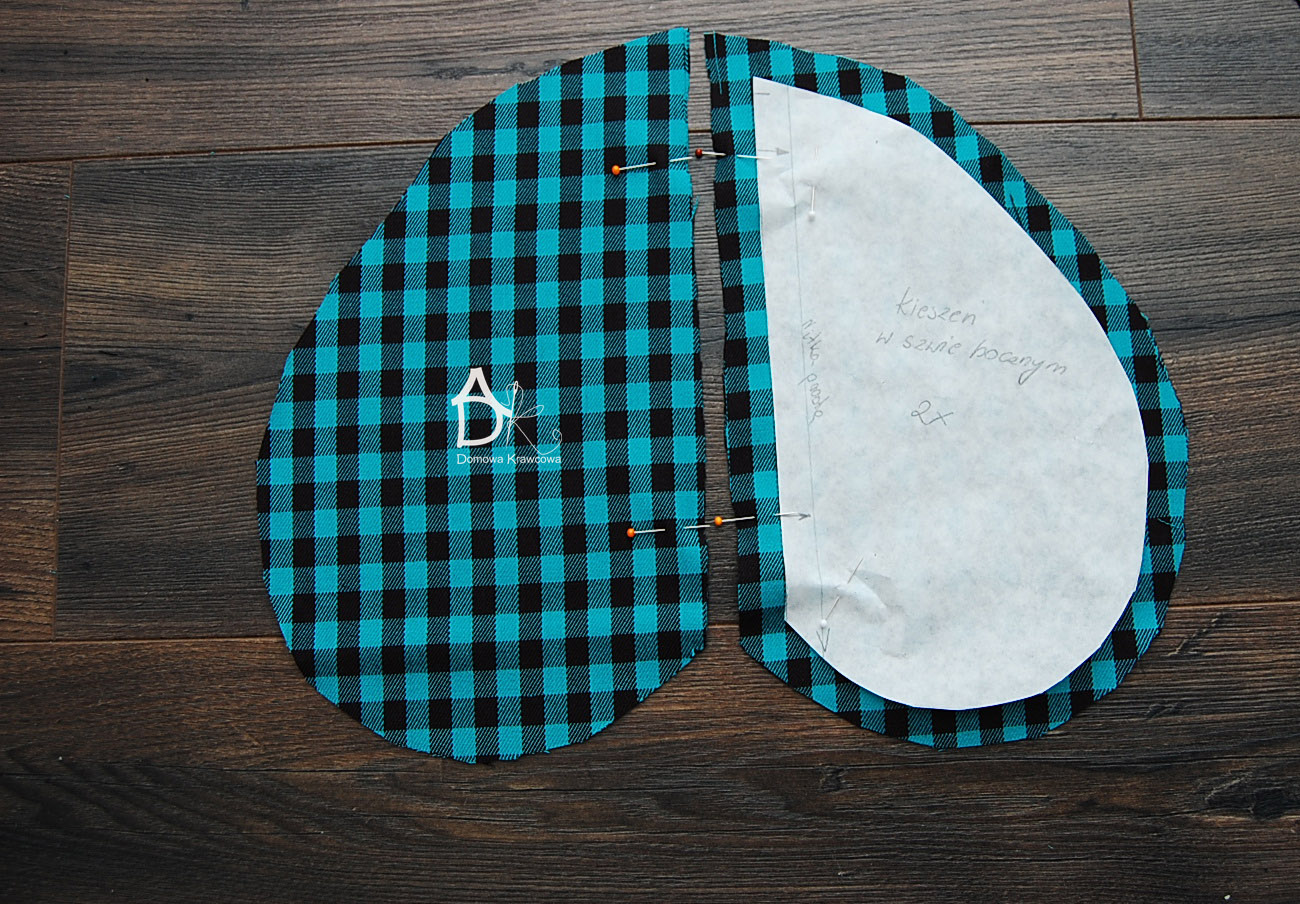 szpilkami boki i worki kieszeniowe i szyjemy ściegiem stebnowym. Od góry