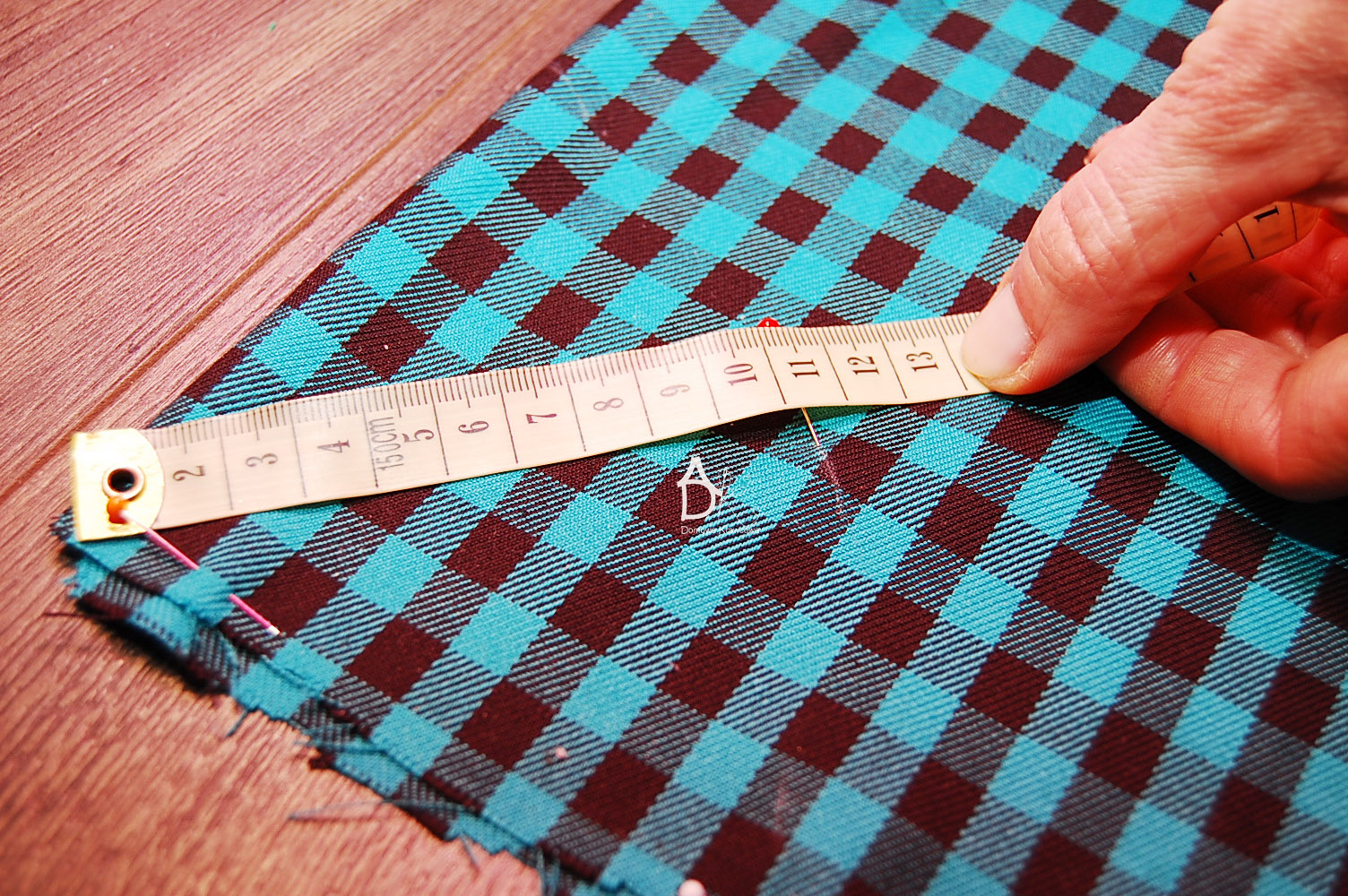 ma kartki to cyrklem bezpośrednio na tkaninie, albo centymetrem.