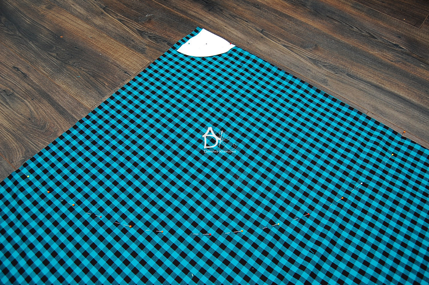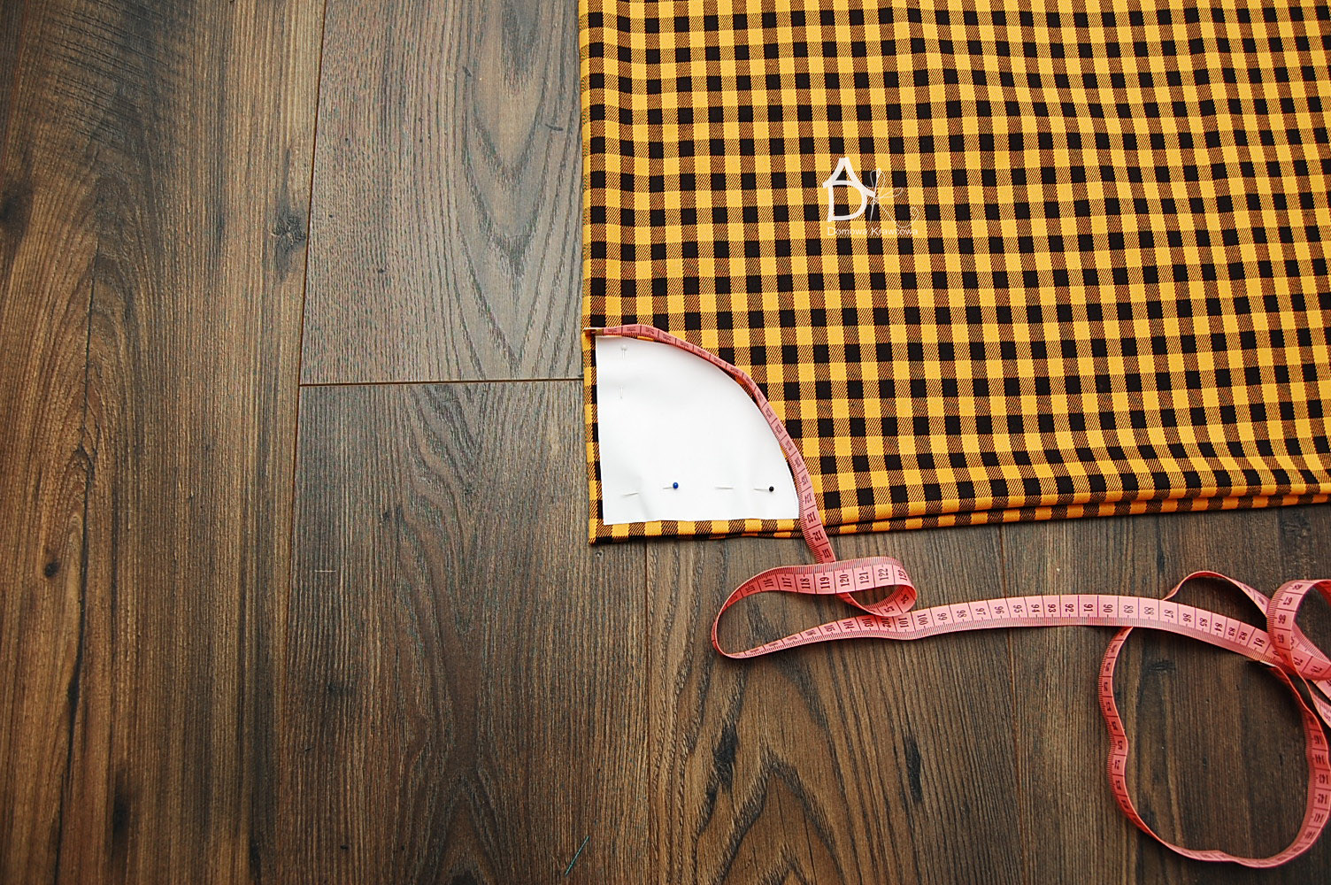 koła spódnicy przenosimy ją na kawałek tkaniny, który nam został układamy w