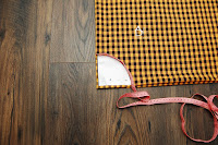 naszą formę papierową do narożnika tkaniny w miejscu złożenia, dodajemy na