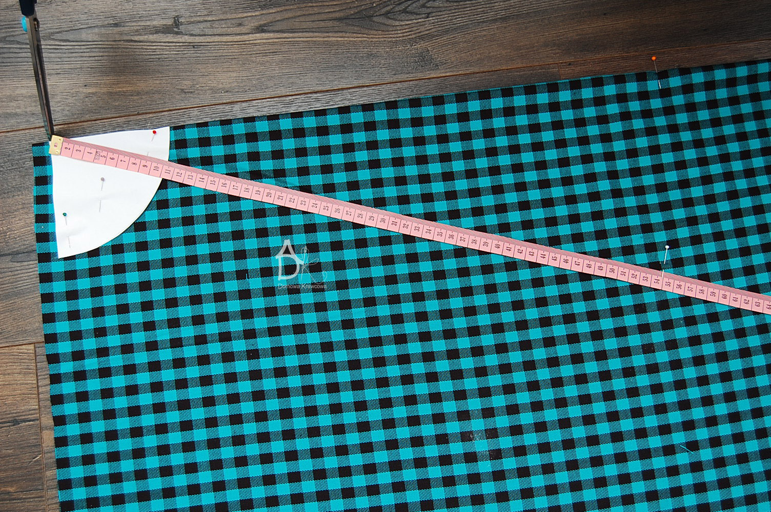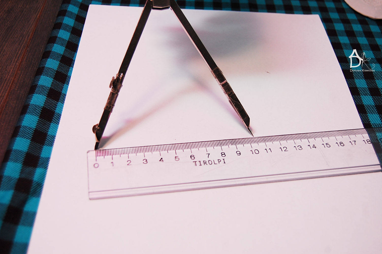 wykreślić bezpośrednio na tkaninie, albo na kartce. Ja mam cyrkiel odmierzam