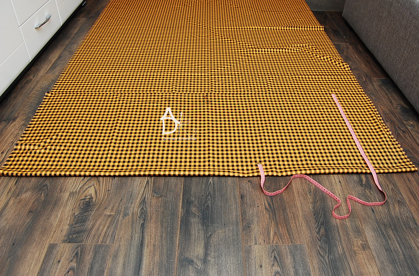 wszystko mamy to rozkładamy tkaninę. Ja na podłodze tak mi jest wygodnie, ale