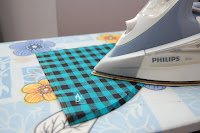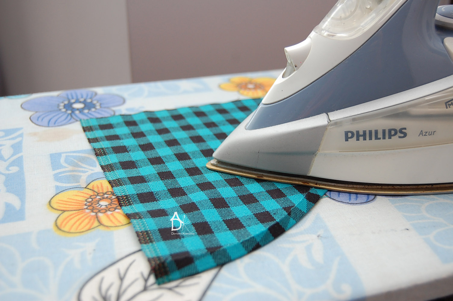 skrojeniem tkaninę dekatyzujemy. Ja moją  przeprasowałam żelazkiem temperatura 160