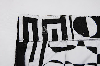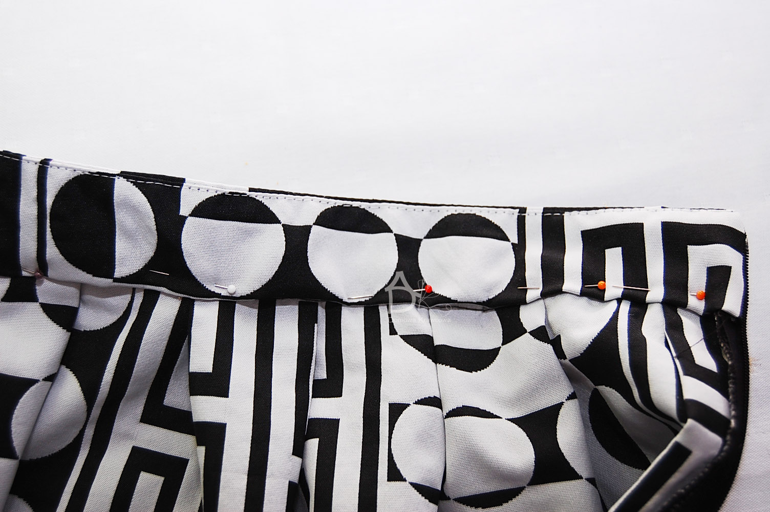 Odwracam spódnicę na lewą stronę i podwijam pasek przypinając szpilkami.