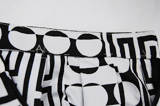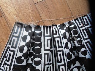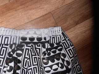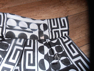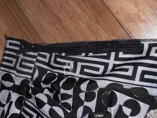 Teraz spinamy szpilkami pasek ze spódnicą. Ponieważ moja tkanina strasznie się siepie musiałam obrzucić overlockiem część gdzie są kontrafałdy i pasek.