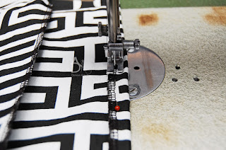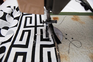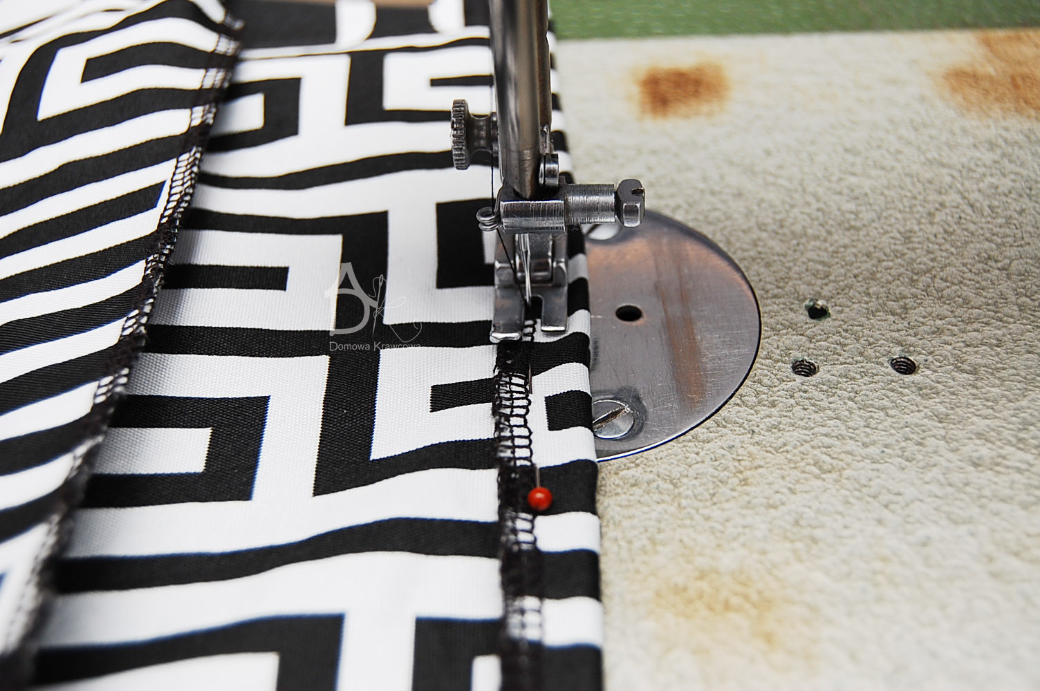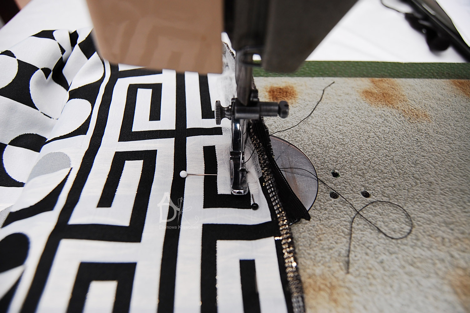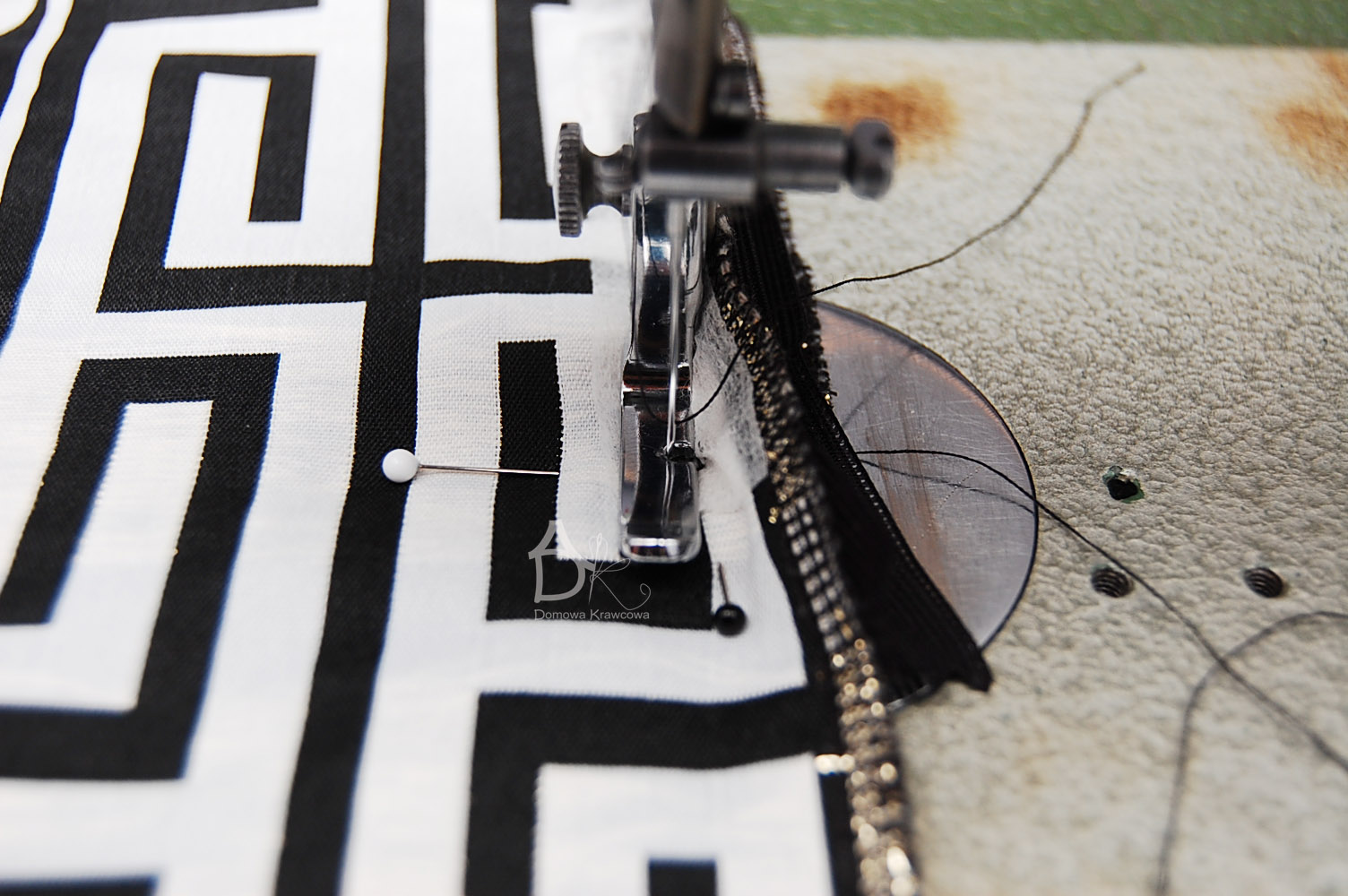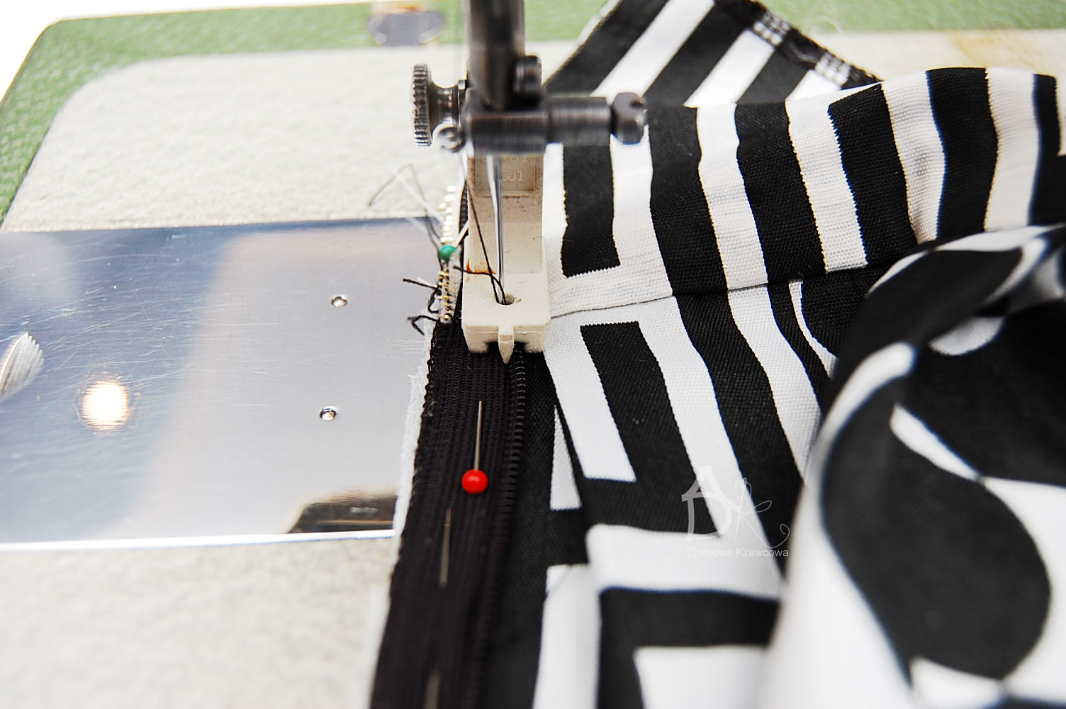 Wszywamy zamek na specjalnej stopce. Zamek jest rozpięty.