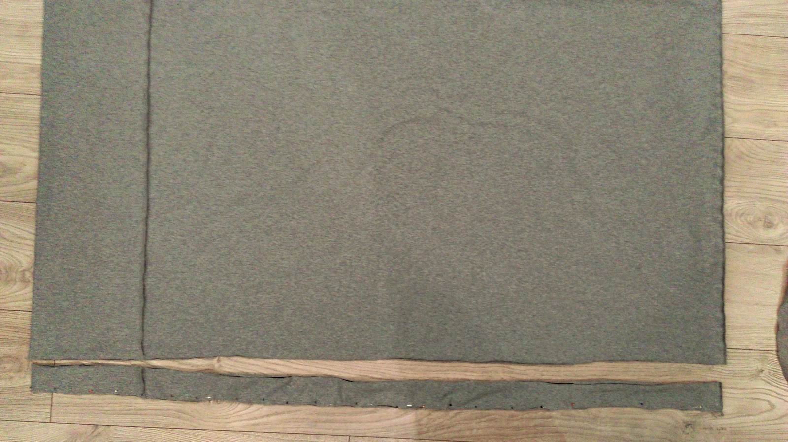 Rozkładamy dzianinę na której odmierzamy pasek szerokości 72 cm i długości w zależności od szerokości naszej tkaniny ja miałam 180 cm i drugi pasek długości 1o3 cm w sumie ma mieć 283 cm. Dzianina ma się ciągną po długości.