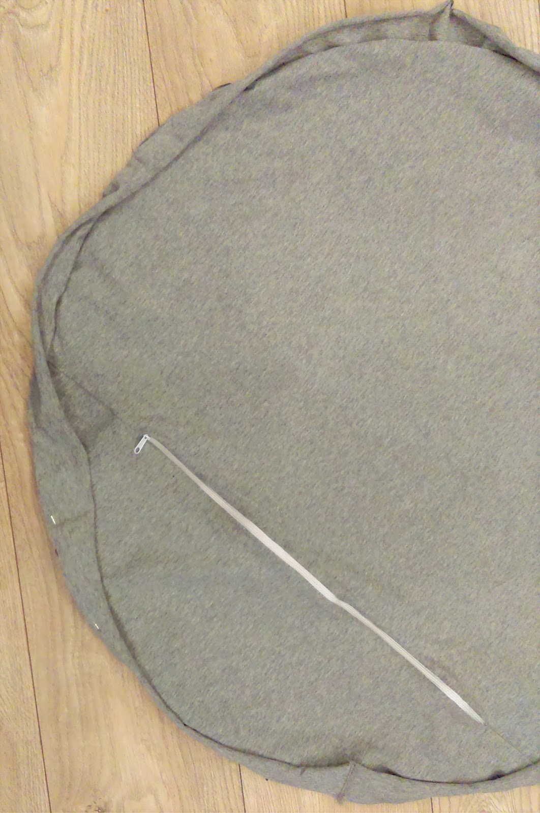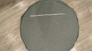Na początek z pianki grubości 2 cm wycinamy koło o średnicy 90 cm. Ja narysowałam w taki sposób dwa ołówki połączyłam sznurkiem 44 cm i jeden wbiłam w środku koła, a drugim wykreślałam okrąg.